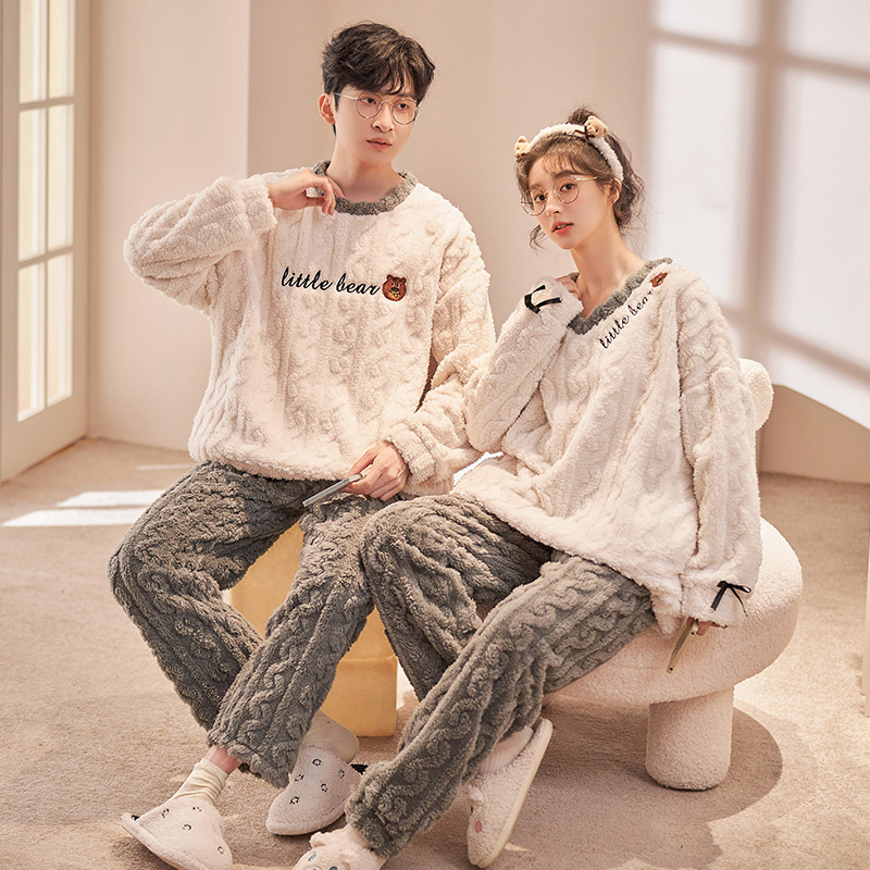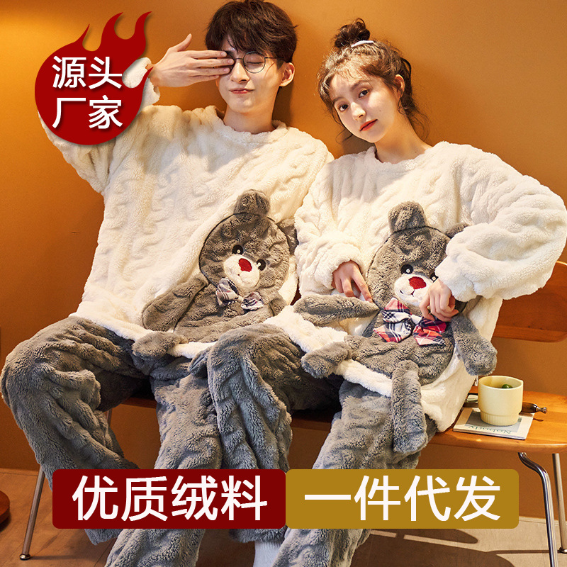パジャマ女性冬フランネルベルベット厚いスタンドカラースポーツ風ホームウェアサンゴベルベット保温カップルスーツ男性