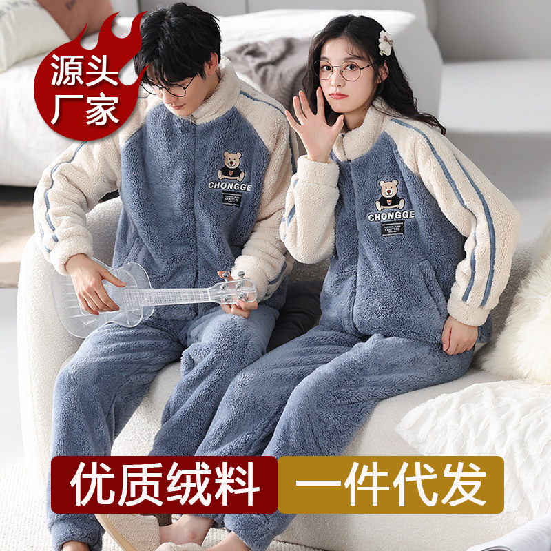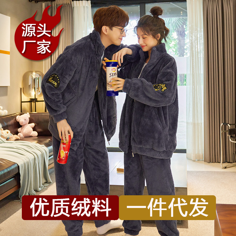 カップルパジャマ冬フランネル保温スタンドカラージッパー軽いスポーツ風珊瑚ベルベットベルベット厚いパジャマ女性