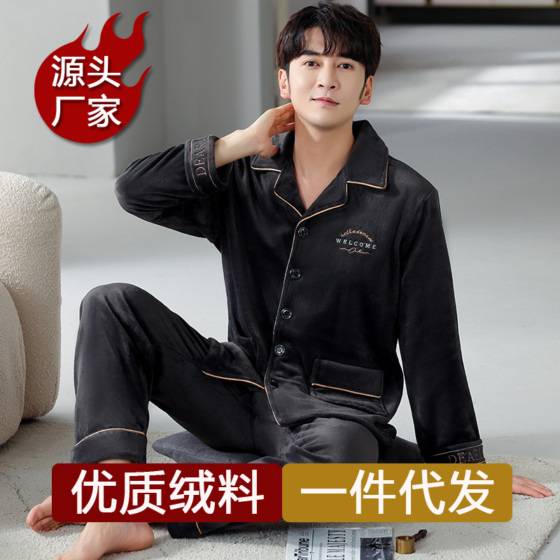 パジャマ男性フランネル秋冬にベルベットを厚くして保温した長袖セットのゆったりした大きいサイズの家庭男性の部屋服