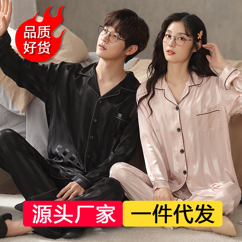 カップルのパジャマ女性の新しい秋の氷のパジャマセットの襟のカーディガンの長袖のズボンの部屋の服の男性のスーツ
