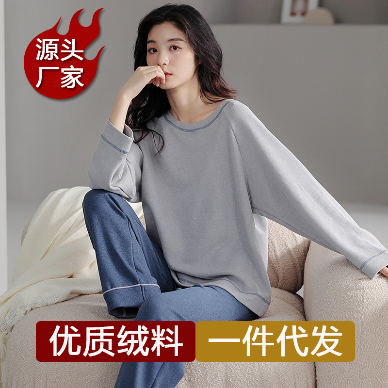 パジャマ女性2022秋冬の新しいベルベットの厚手のベルベットパジャマ日系純色長袖長ズボン大サイズ冬セット
