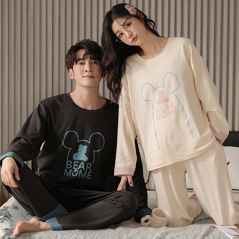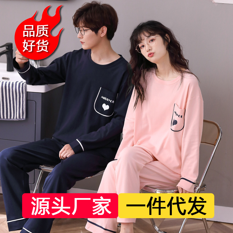 秋の新型パジャマ女性純綿長袖2枚カップルスーツ大サイズカジュアル秋冬純綿ルームウェア男性