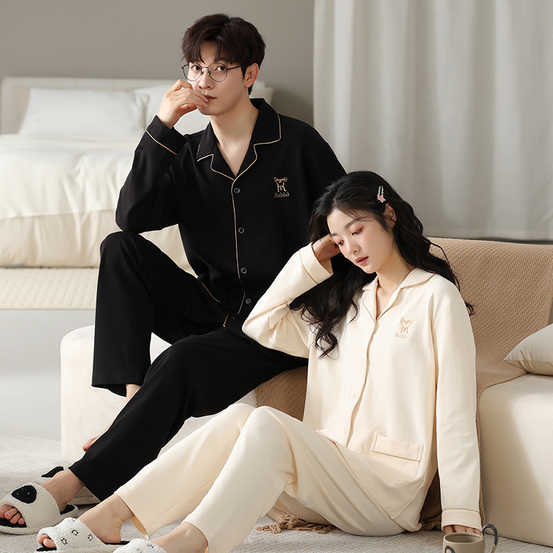 純綿カップルパジャマ女性秋冬襟付き純色カーディガン