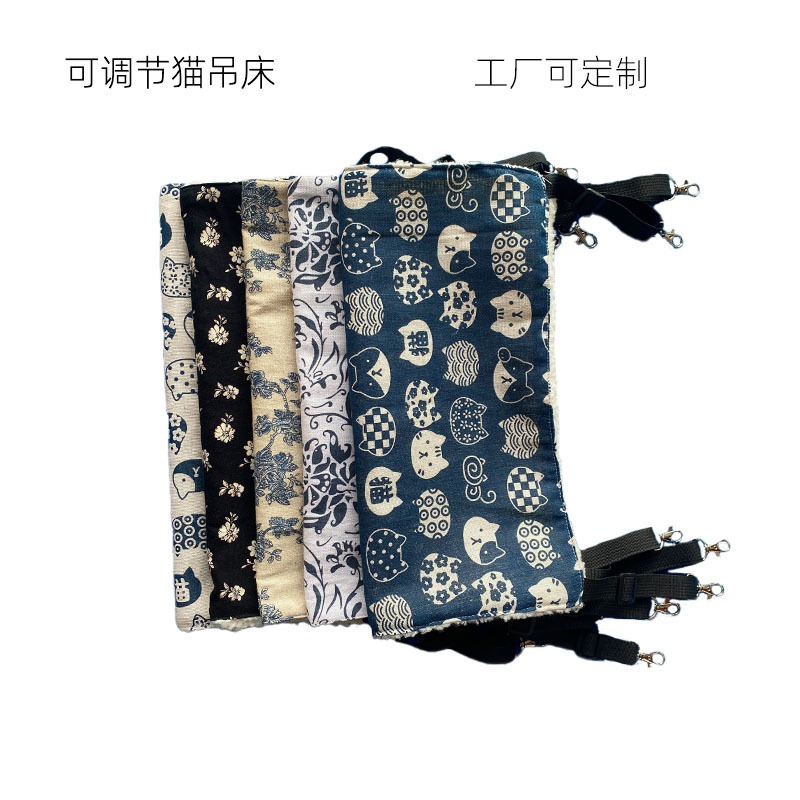 プリント猫ハンモック冬夏両用ペットクッション掛けケージペットハンモック調節可能ダウンブランコ猫ベッド