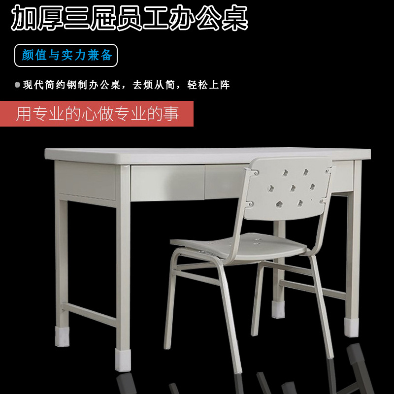 スチール製のシンプルなオフィスコンピューターデスク、引き出し付きロック可能な取り外し可能なデスクトップテーブル、鉄製の商業用ワークテーブル