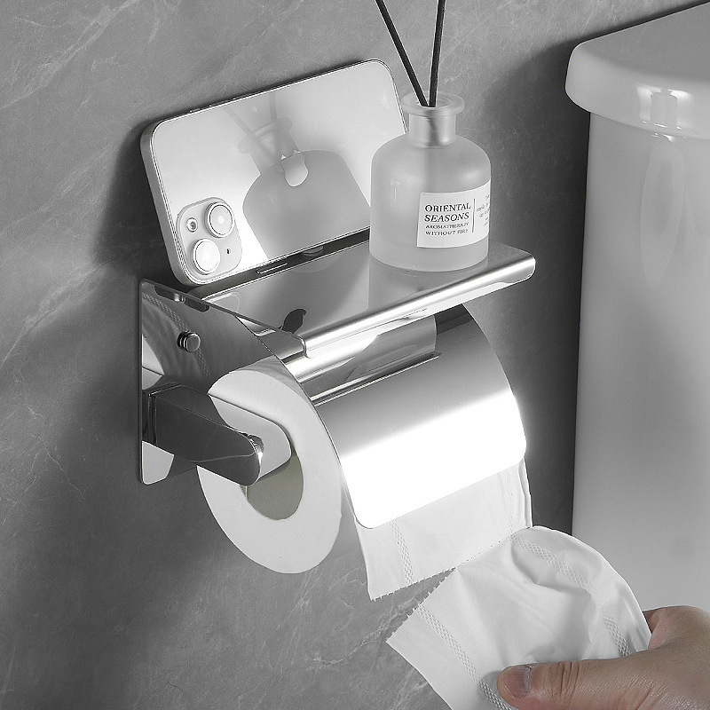 シンプルなティッシュ棚トイレ304ステンレス携帯電話棚トイレの手押し箱壁掛け式ロールホルダー