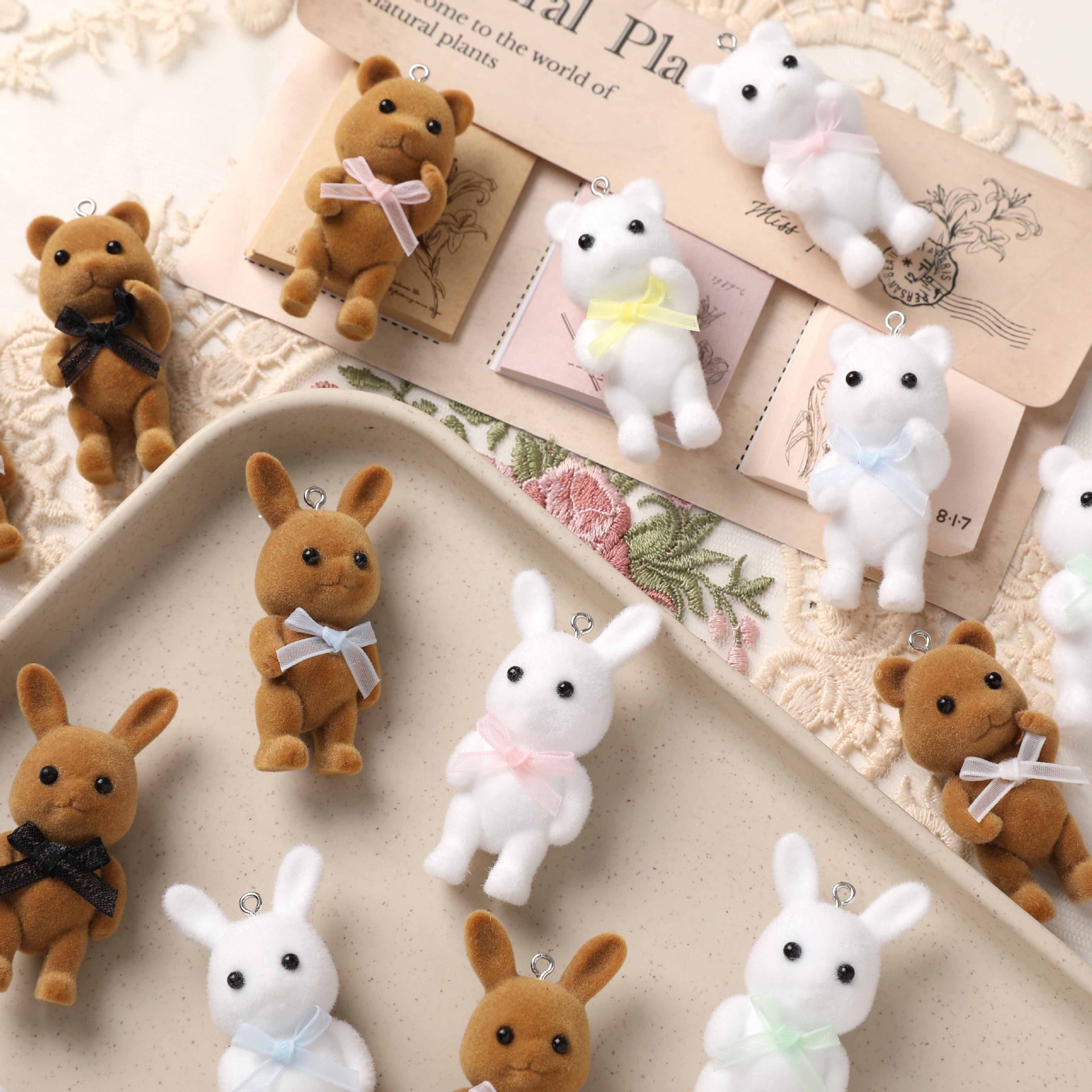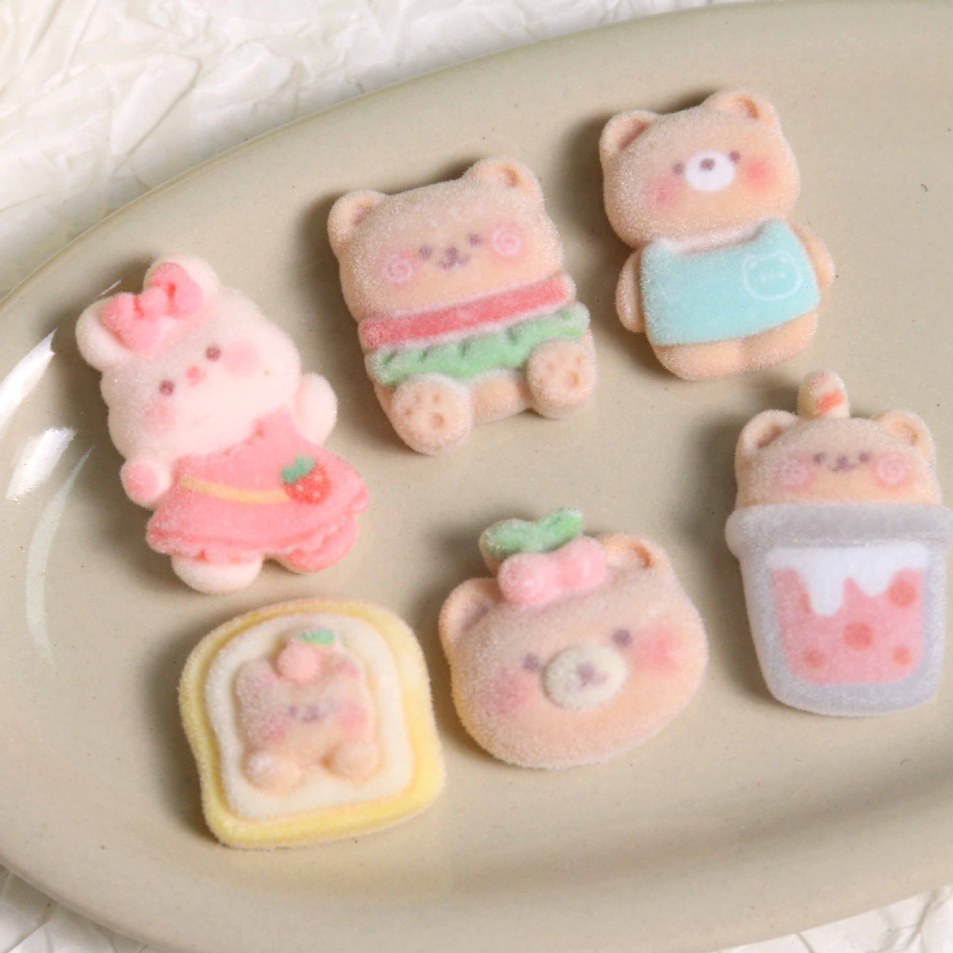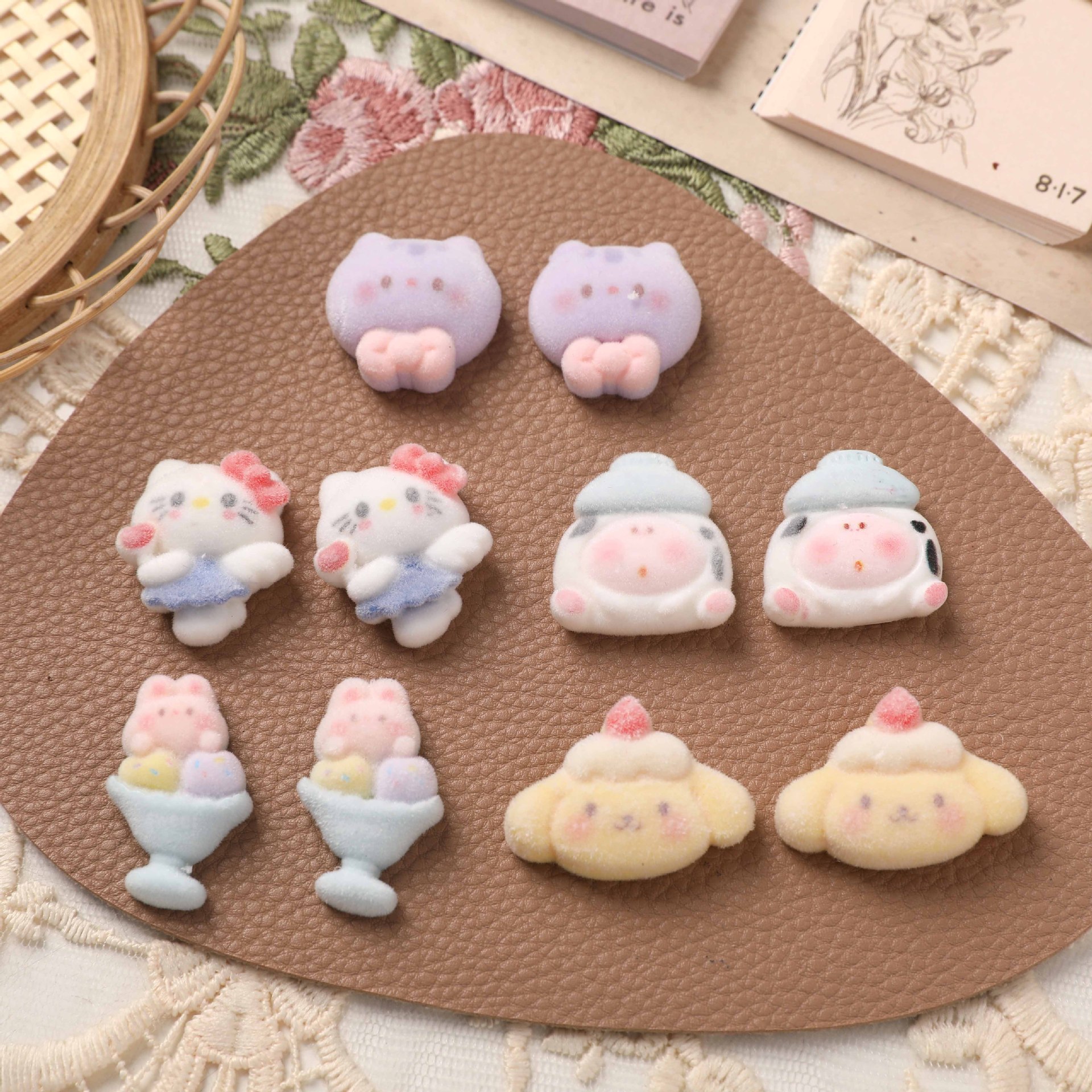 日系アニメかわいいミルクティー熊ウサギパン植毛樹脂パッチdiyイヤリング髪飾りヘアピン材料