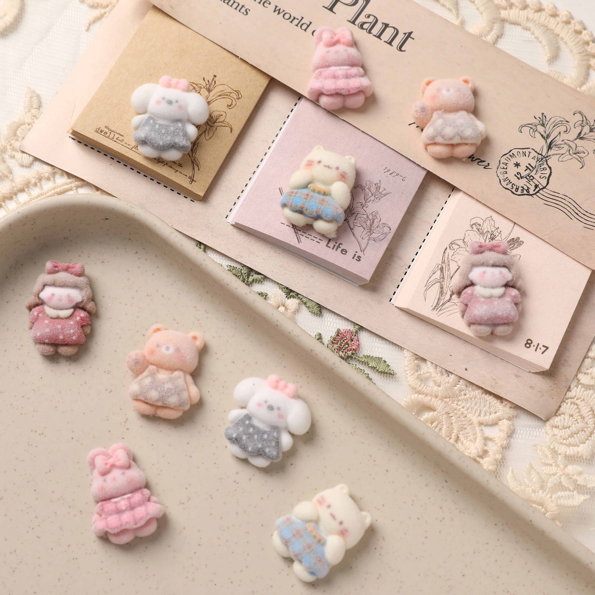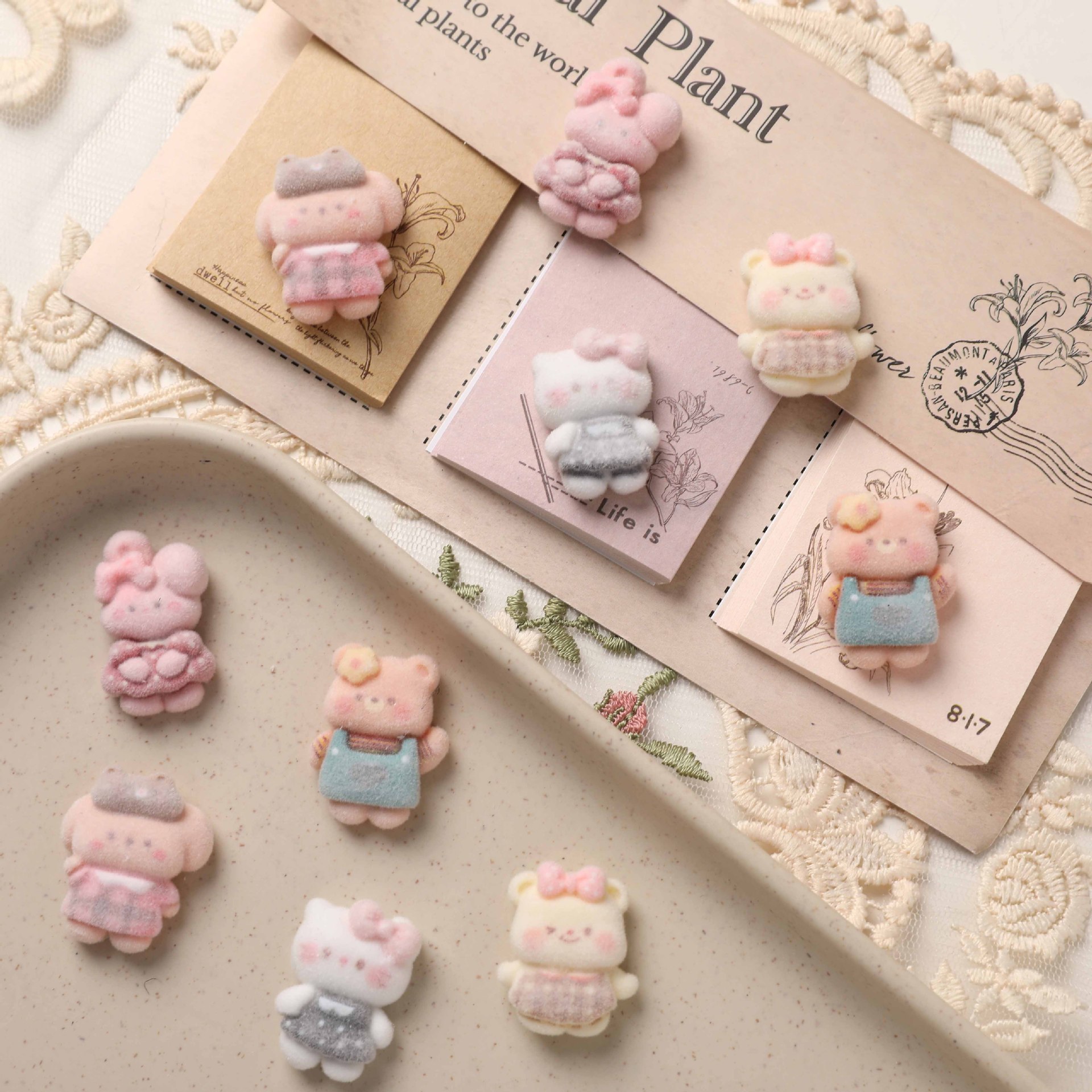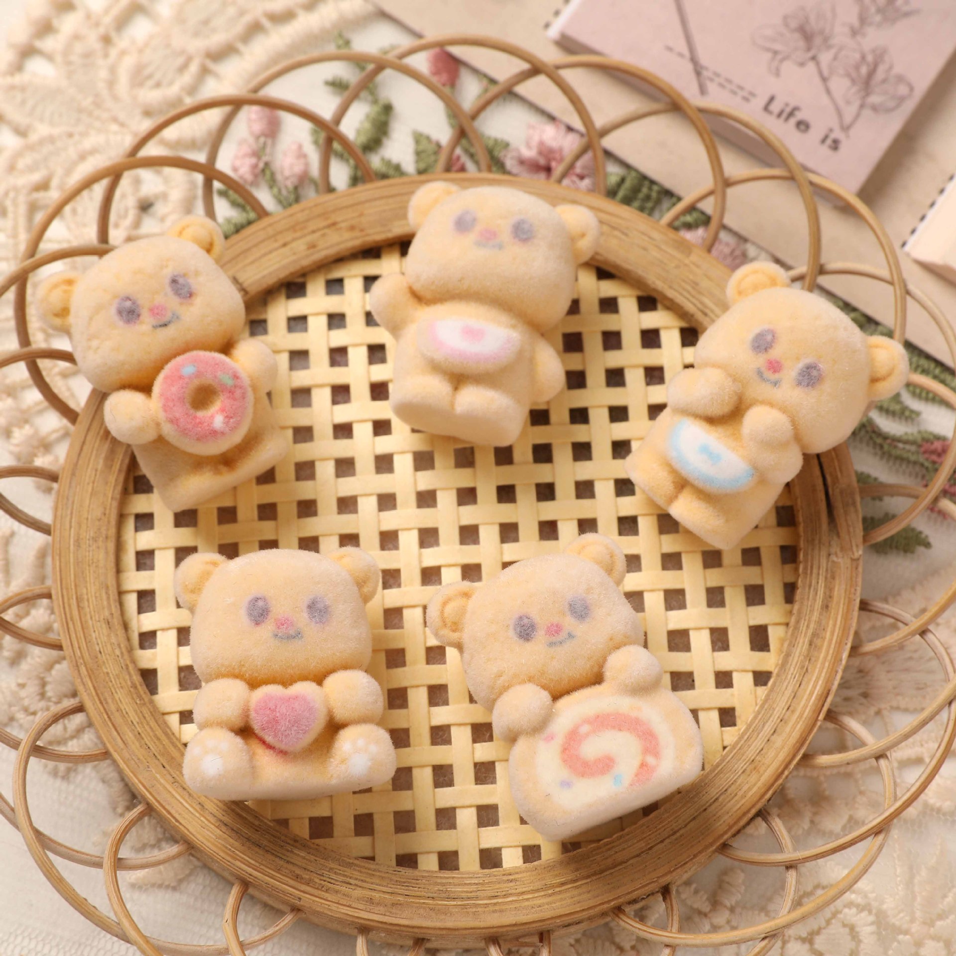 日系アニメかわいいミルクティー熊ウサギパン植毛樹脂パッチdiyイヤリング髪飾りヘアピン材料