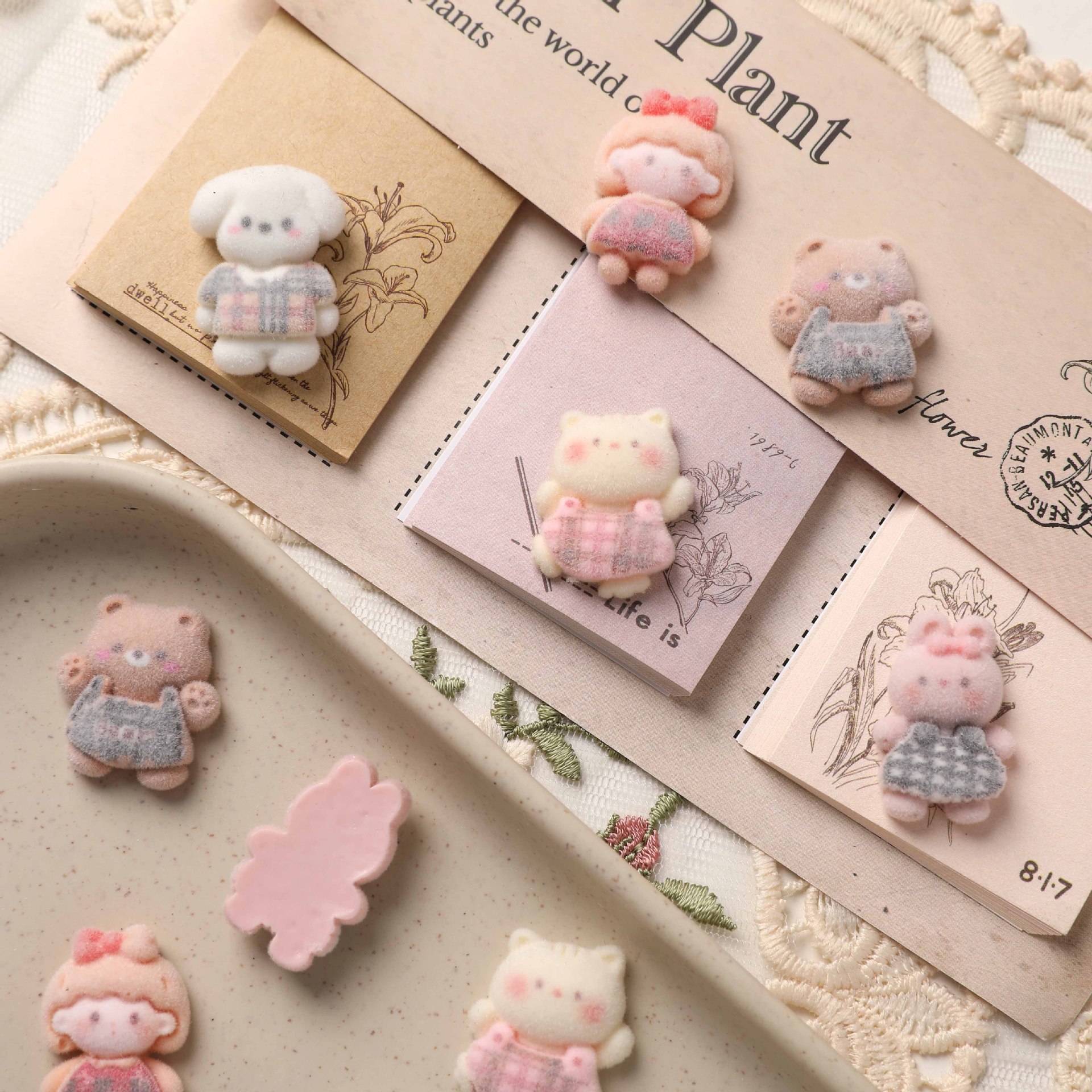 樹脂植毛クリームゴムの格子縞のスカートの女の子のパチャ犬の熊の猫のウサギのDIYの髪飾りのヘアピンの部品