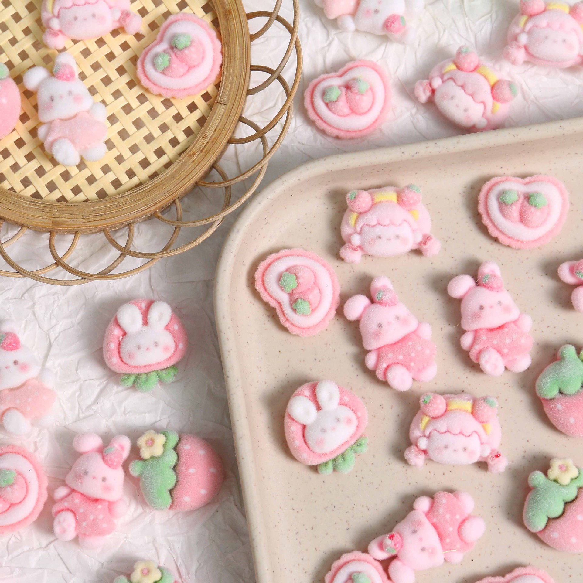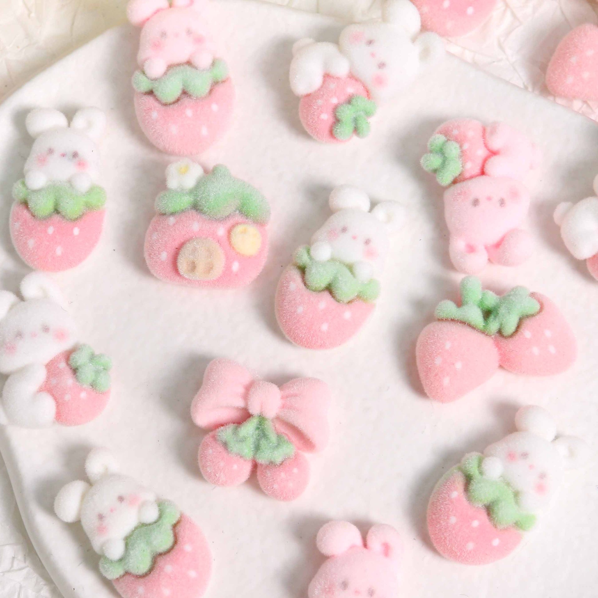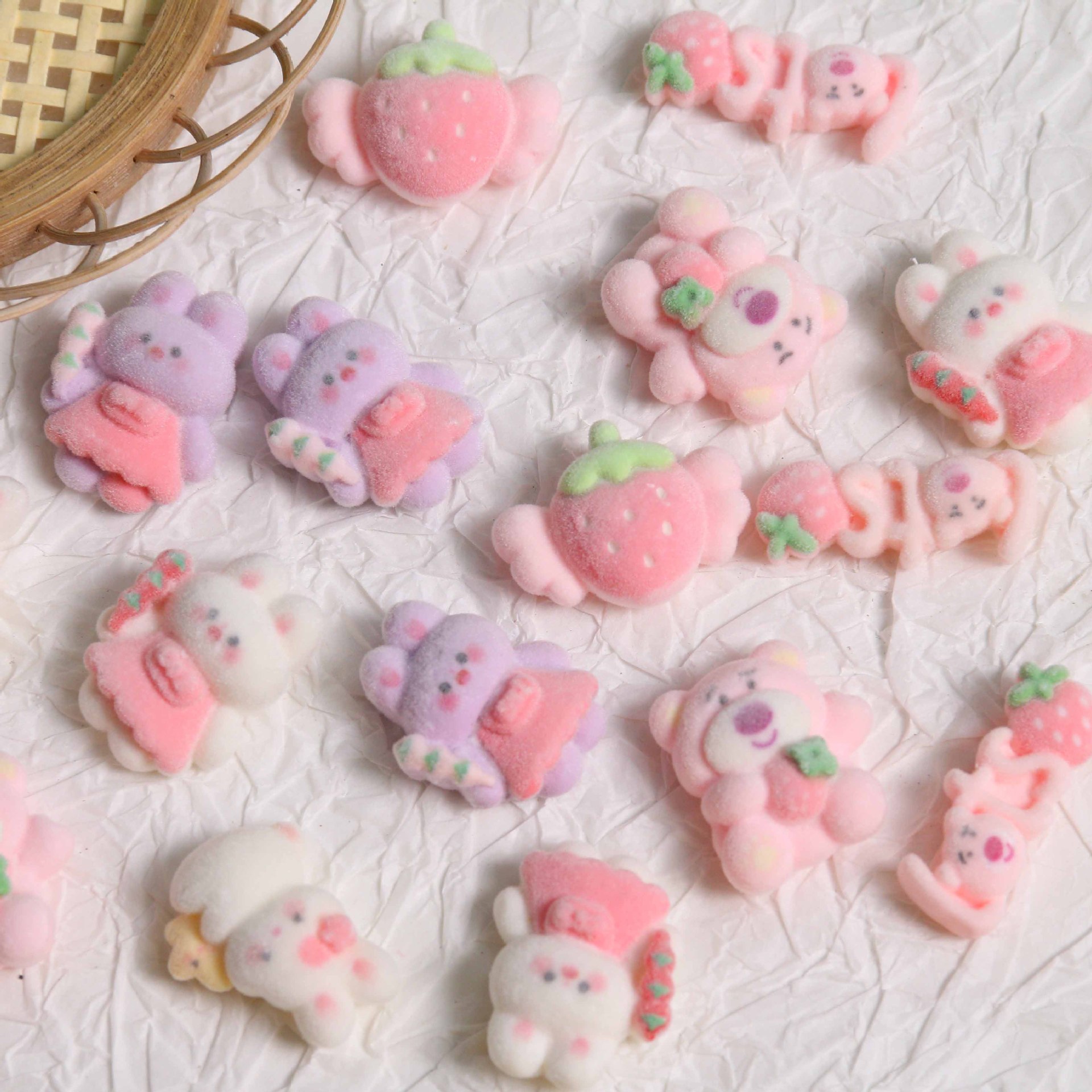 日本系の甘いかわいい植毛いちご熊ウサギ樹脂部品diy携帯ケース髪飾りヘアピン材料卸売り