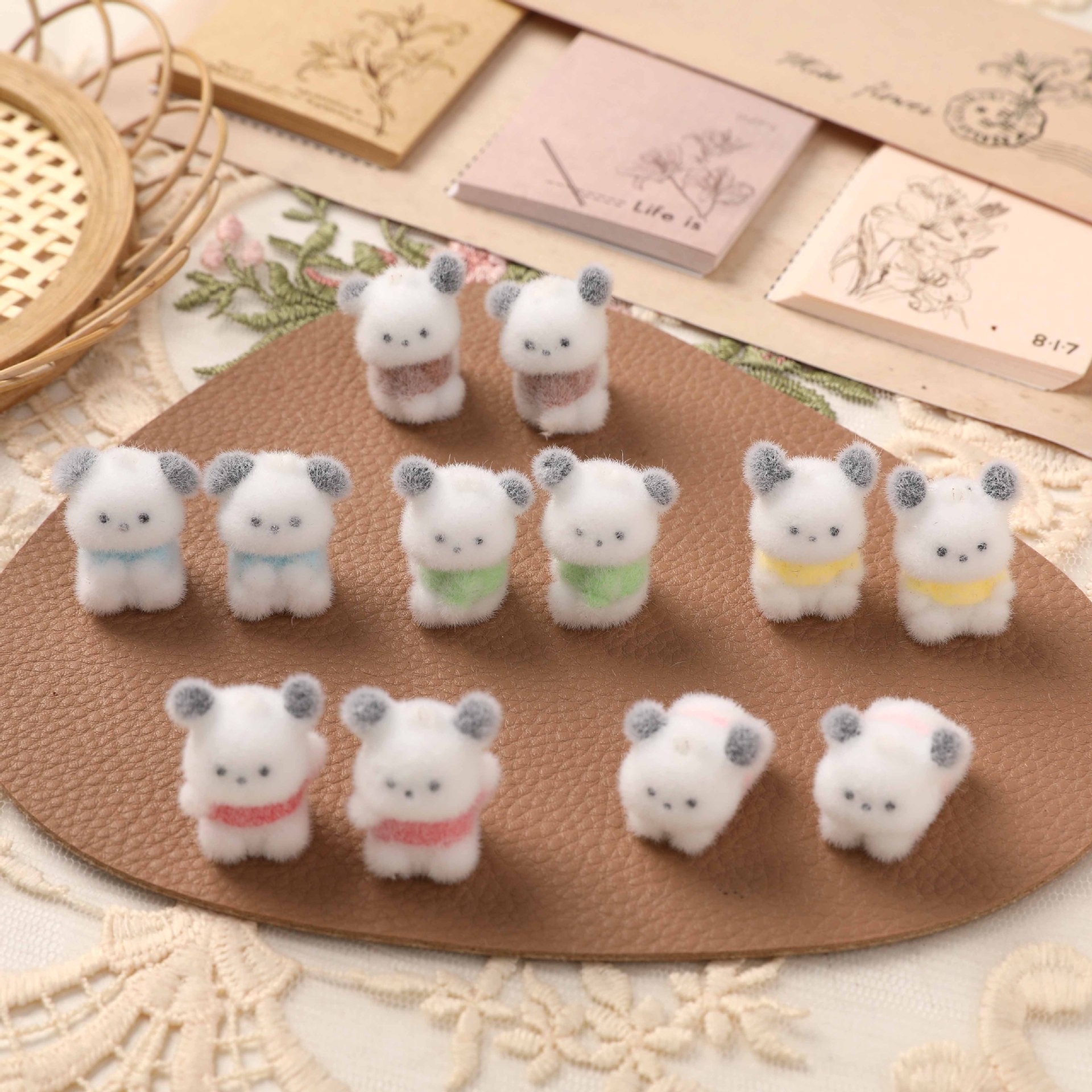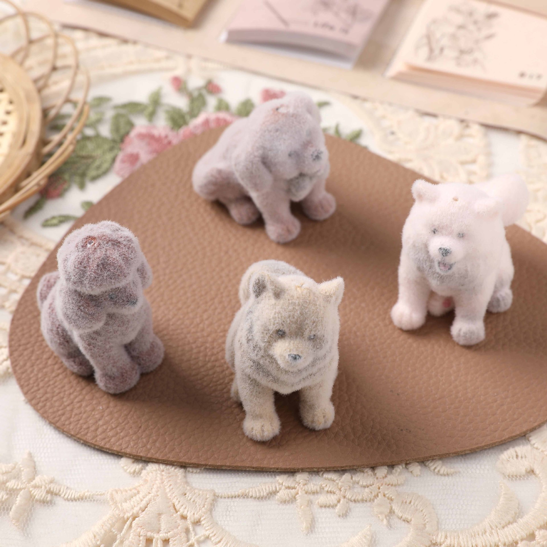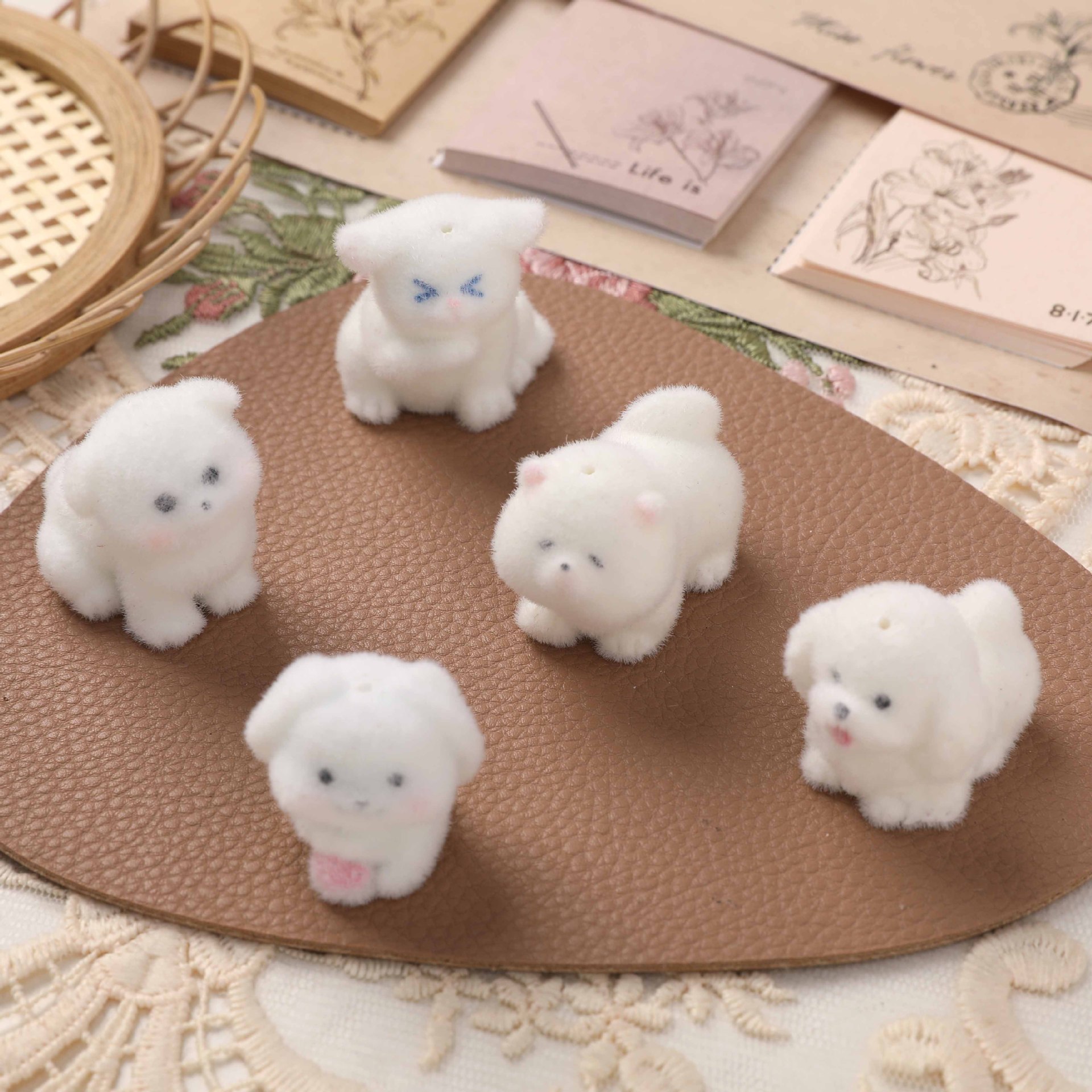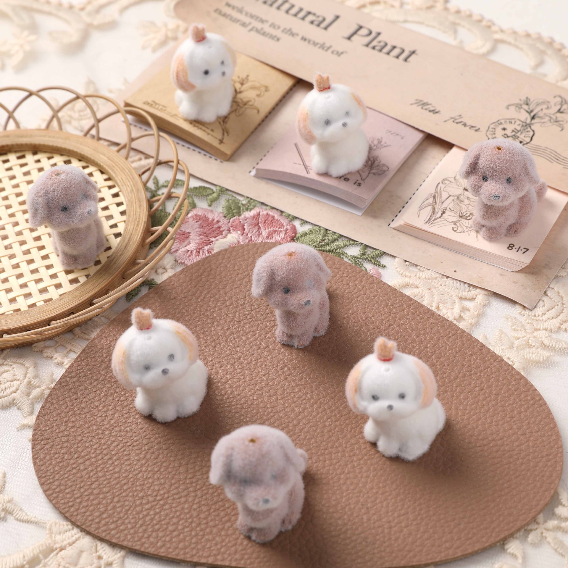 かわいい立体植毛子犬のぬいぐるみ樹脂DIYアクセサリーのキーホルダー