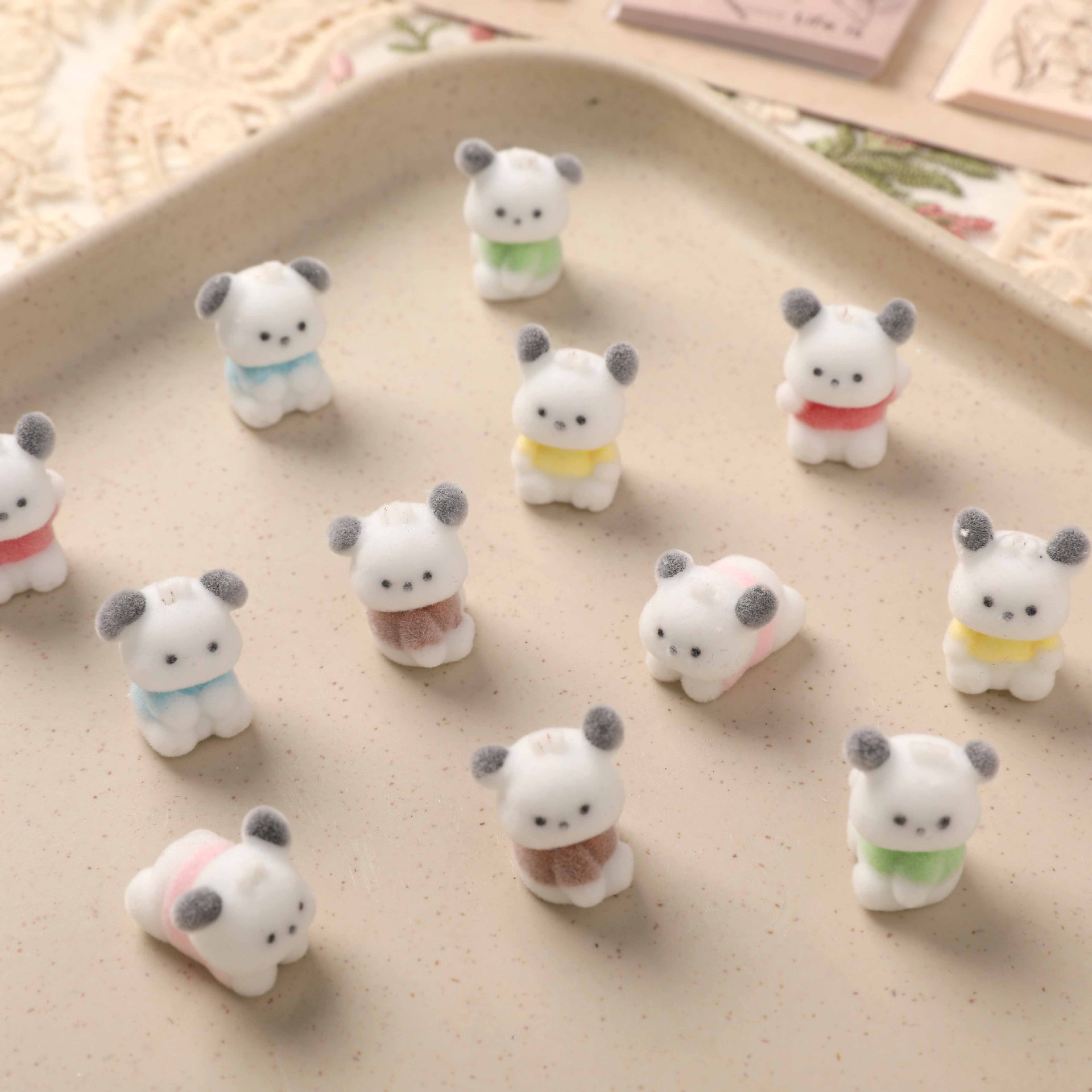 日系アニメ風かわいい立体植毛子犬が萌え犬の人形樹脂DIYキーホルダーのアクセサリーを売っています。