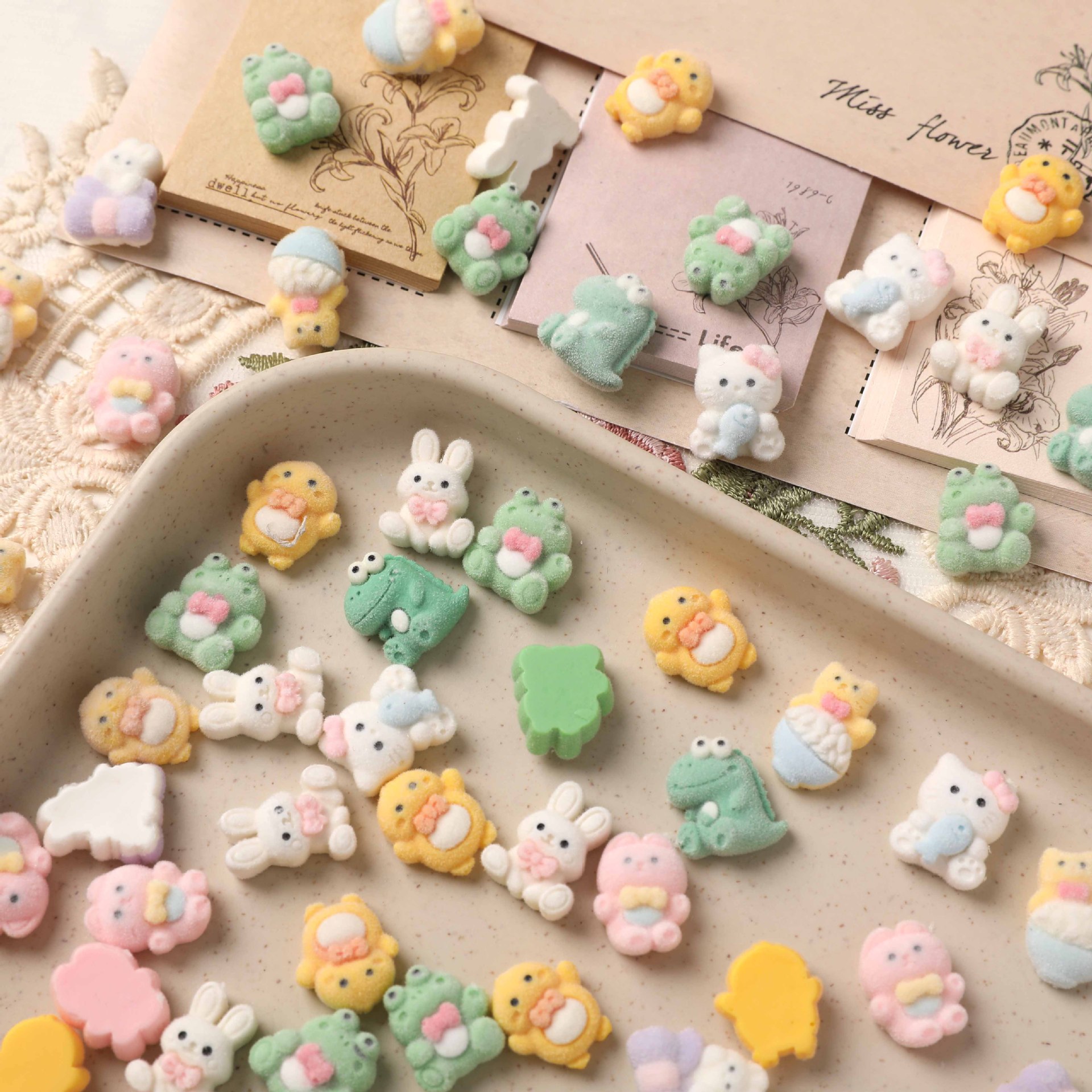 趣味アニメかわいい植毛立体萌え小花ウサギDIYイヤリング女性ストラップアクセサリー卸売り