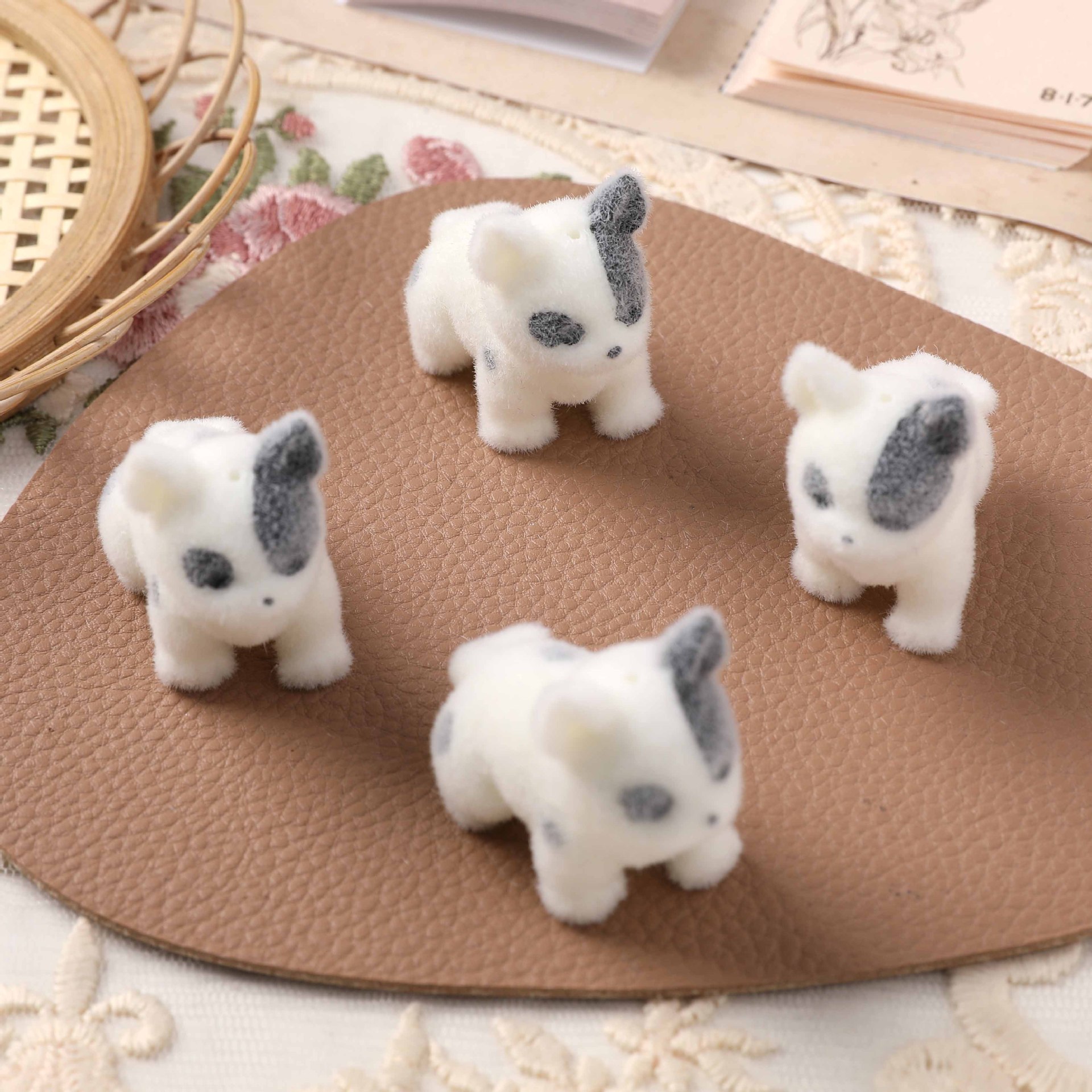 日系のかわいい立体植毛のぬいぐるみの牛の紋様の斑点の猫の樹脂のDIYのペンダントのキーホルダーの部品
