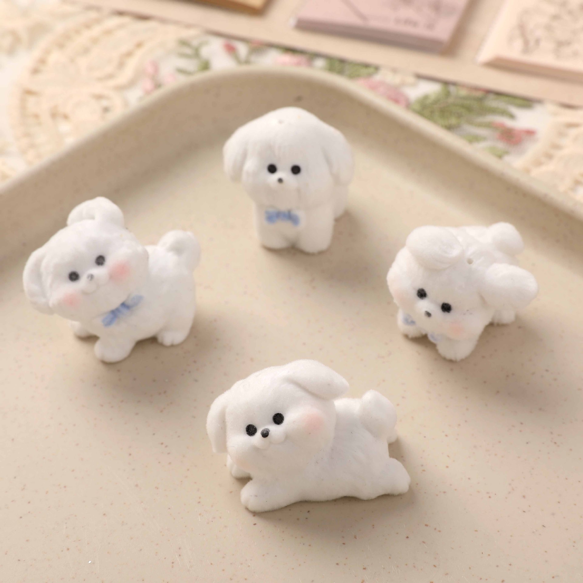 かわいい萌え植毛が走る白犬diy装飾品ミニカーデスクトップ装飾品アクセサリー