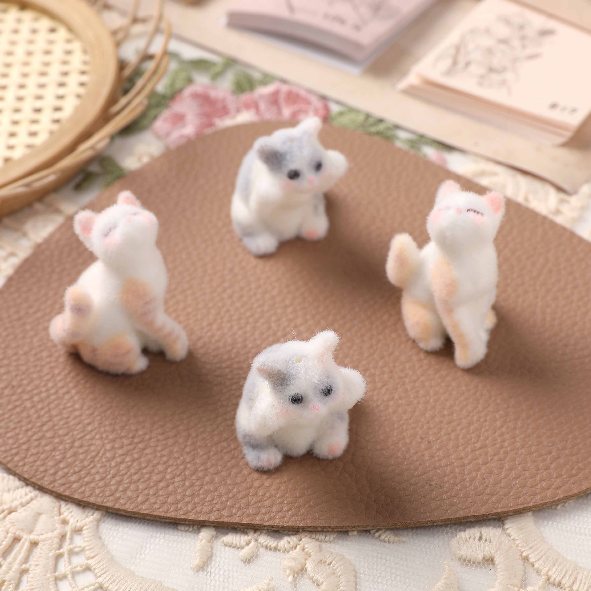 かわいい立体植毛傲慢な販売萌え猫子猫人形樹脂DIY鍵穴車載小物部品