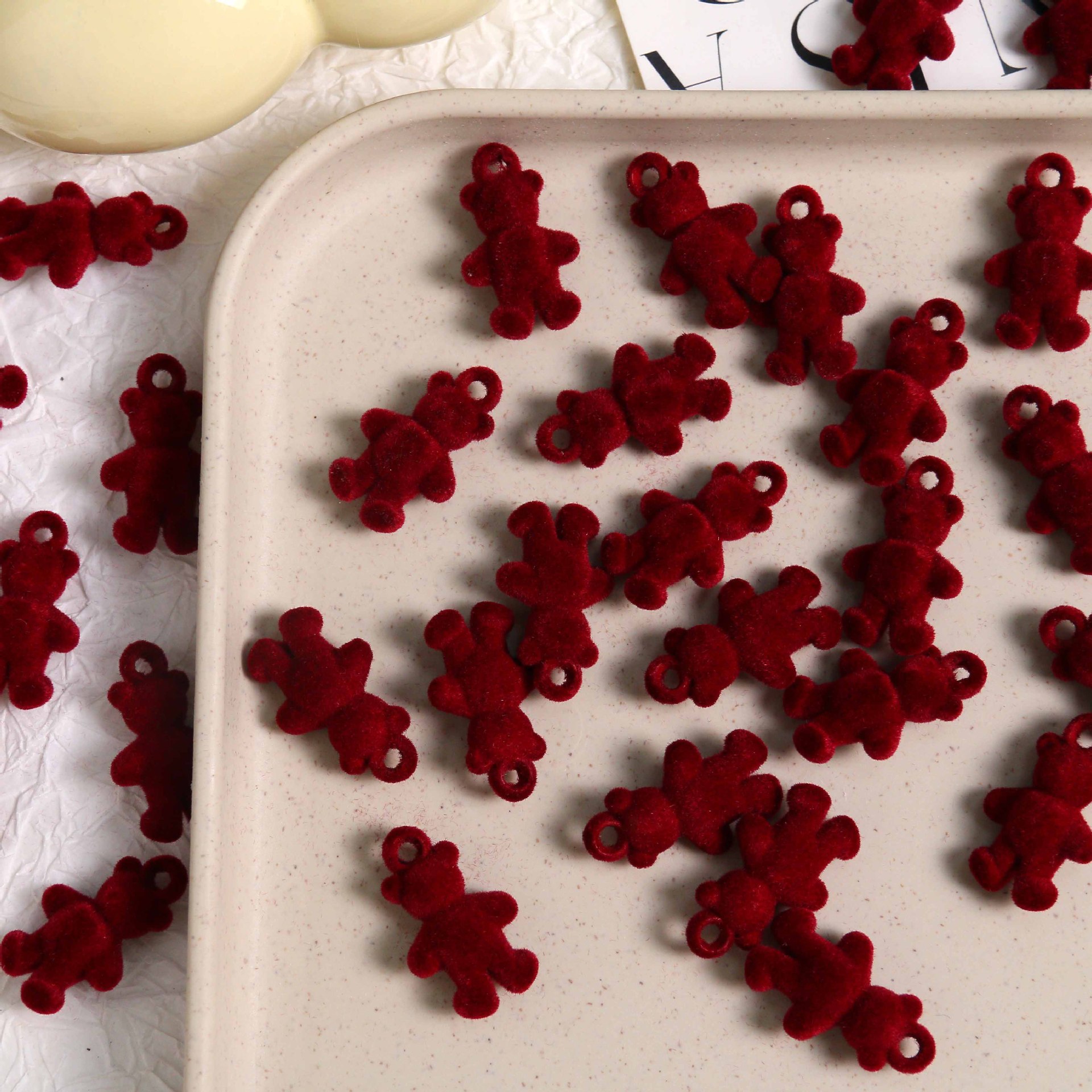 高級酒紅立体植毛熊帯吊りアクセサリー部品diyイヤリング髪飾りアクセサリー材料