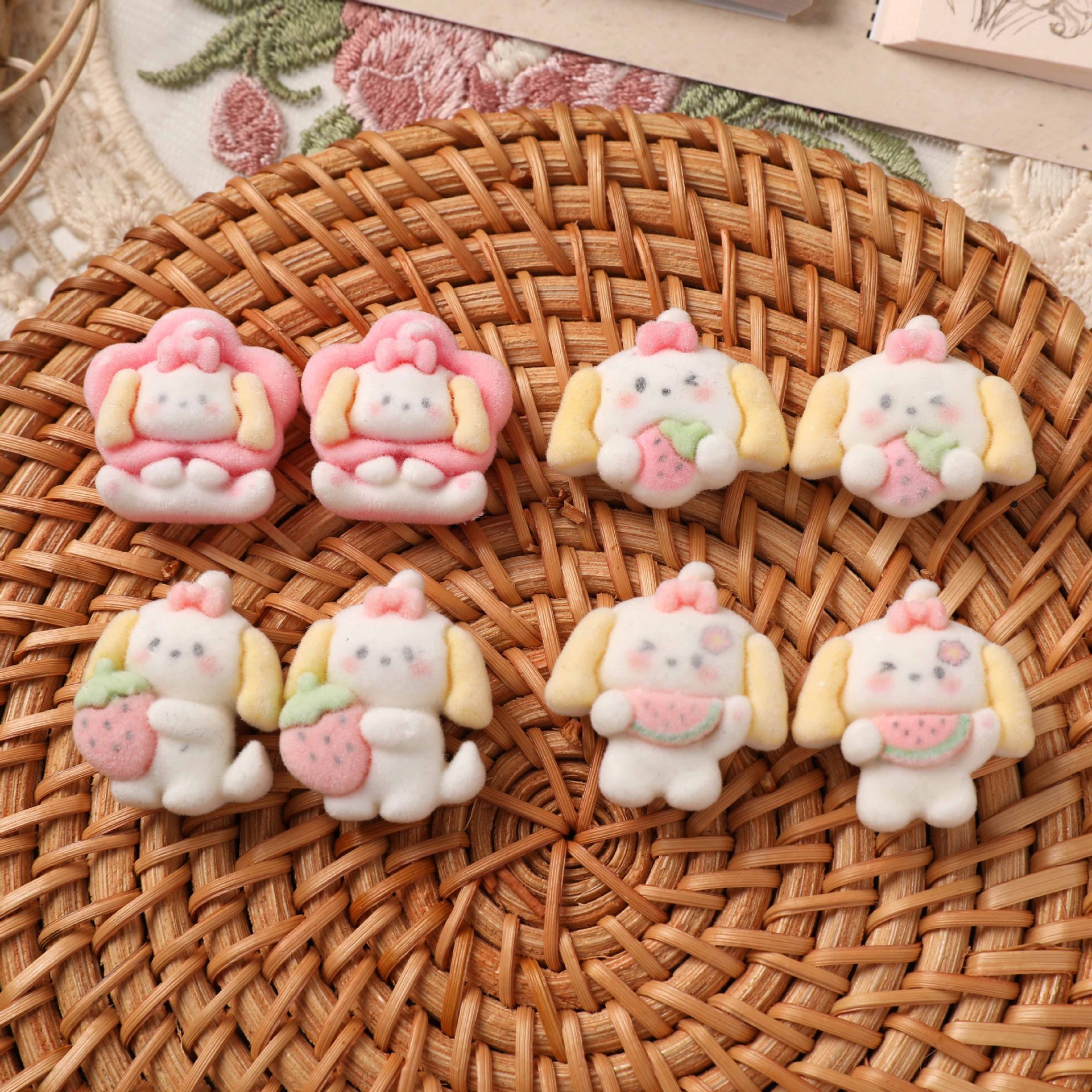甘いかわいい萌えいちご犬植毛樹脂パッチDIY髪飾りヘアピン携帯電話ケース部品材料卸売り