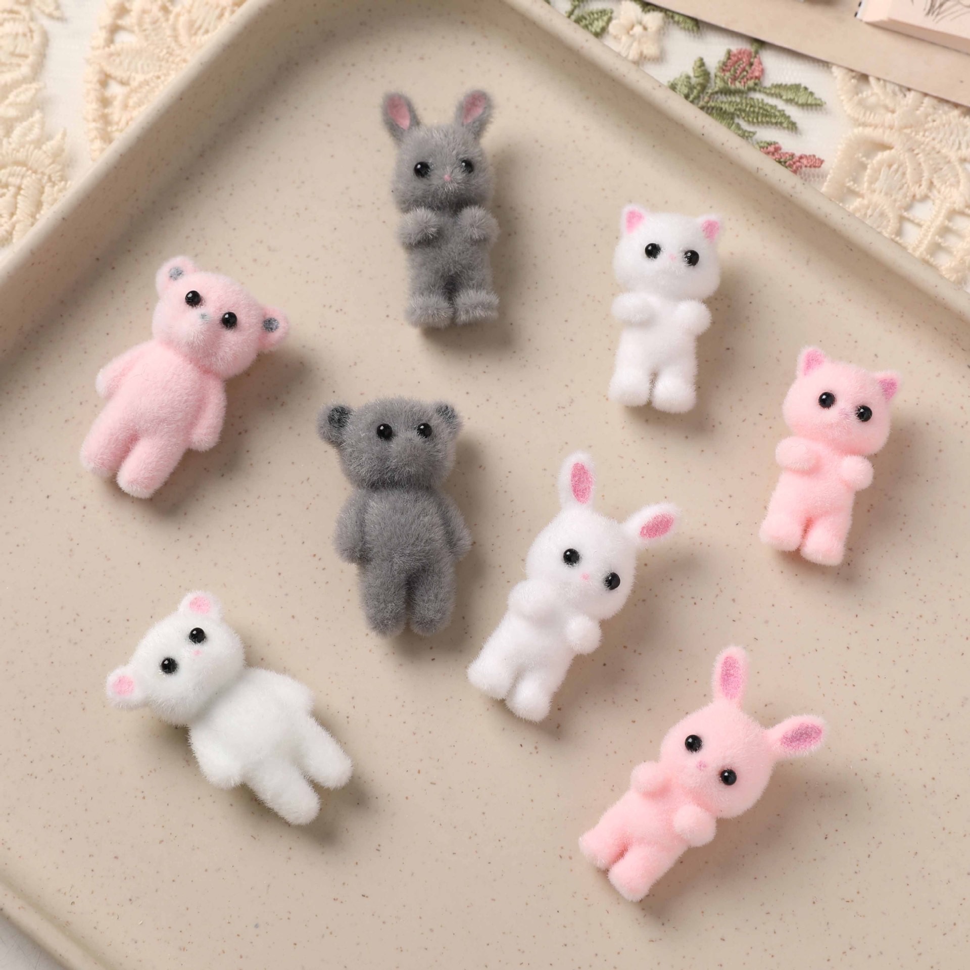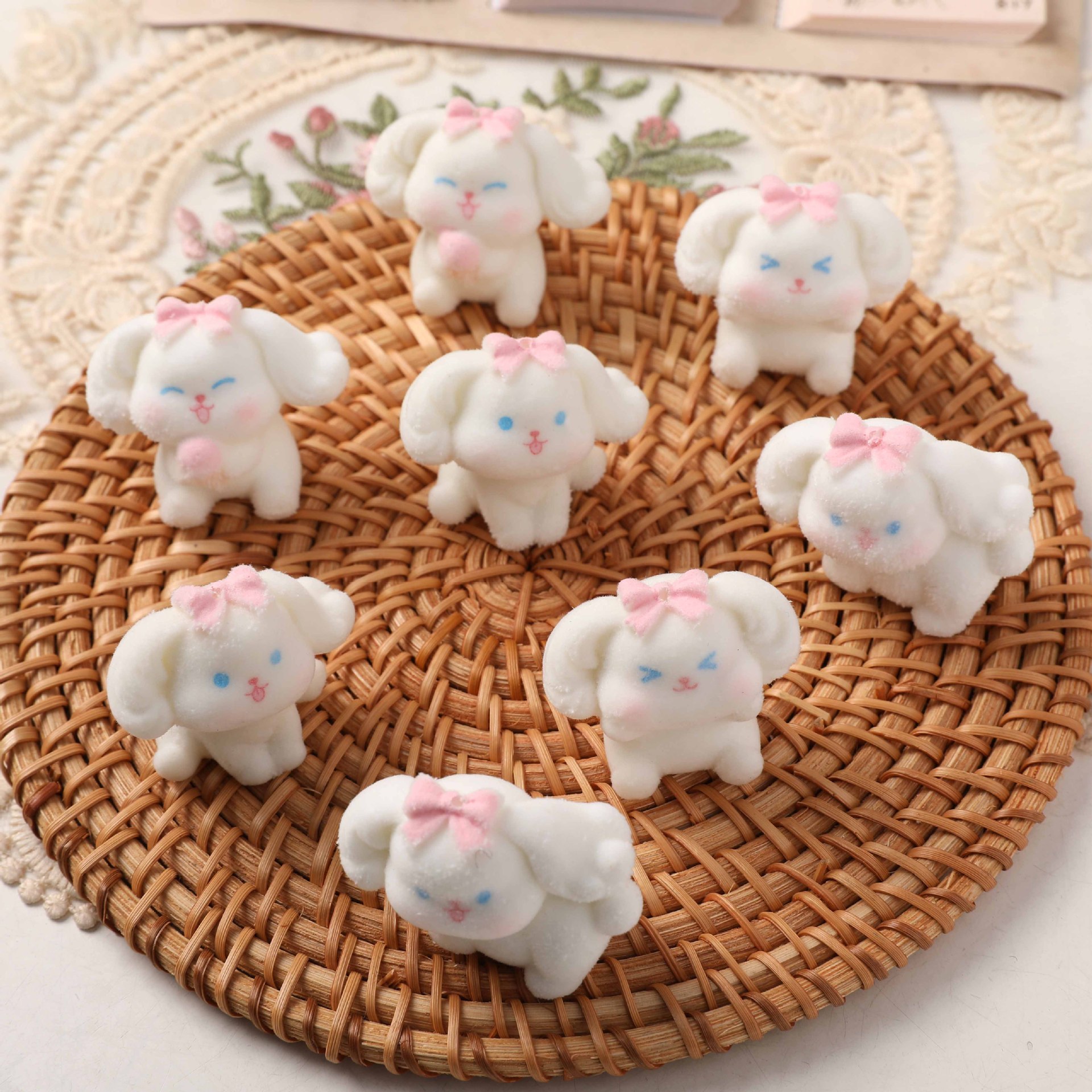 新年かわいいアニメ動物の大きな耳犬植毛樹脂部品diyイヤリング髪飾りヘアピン材料卸売り