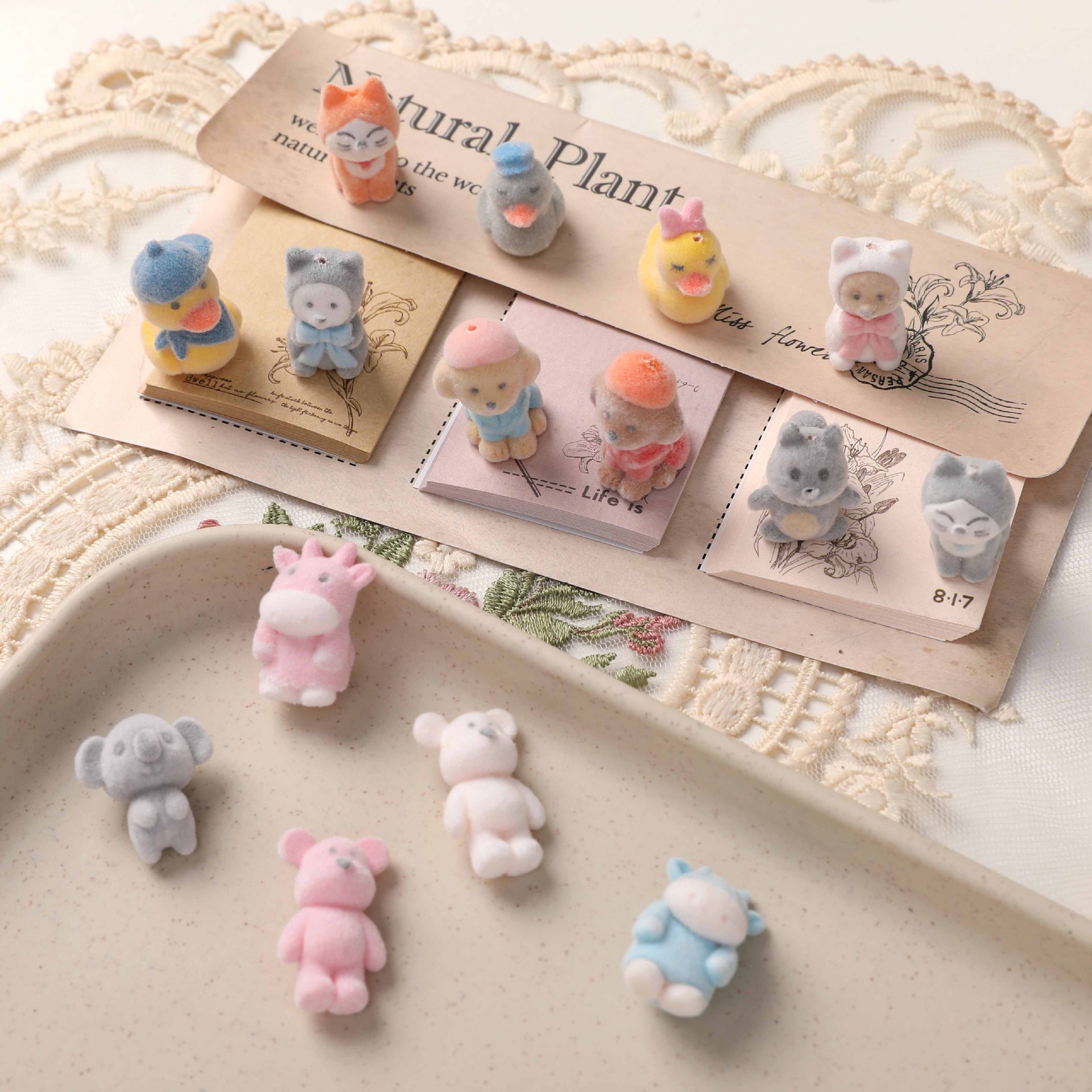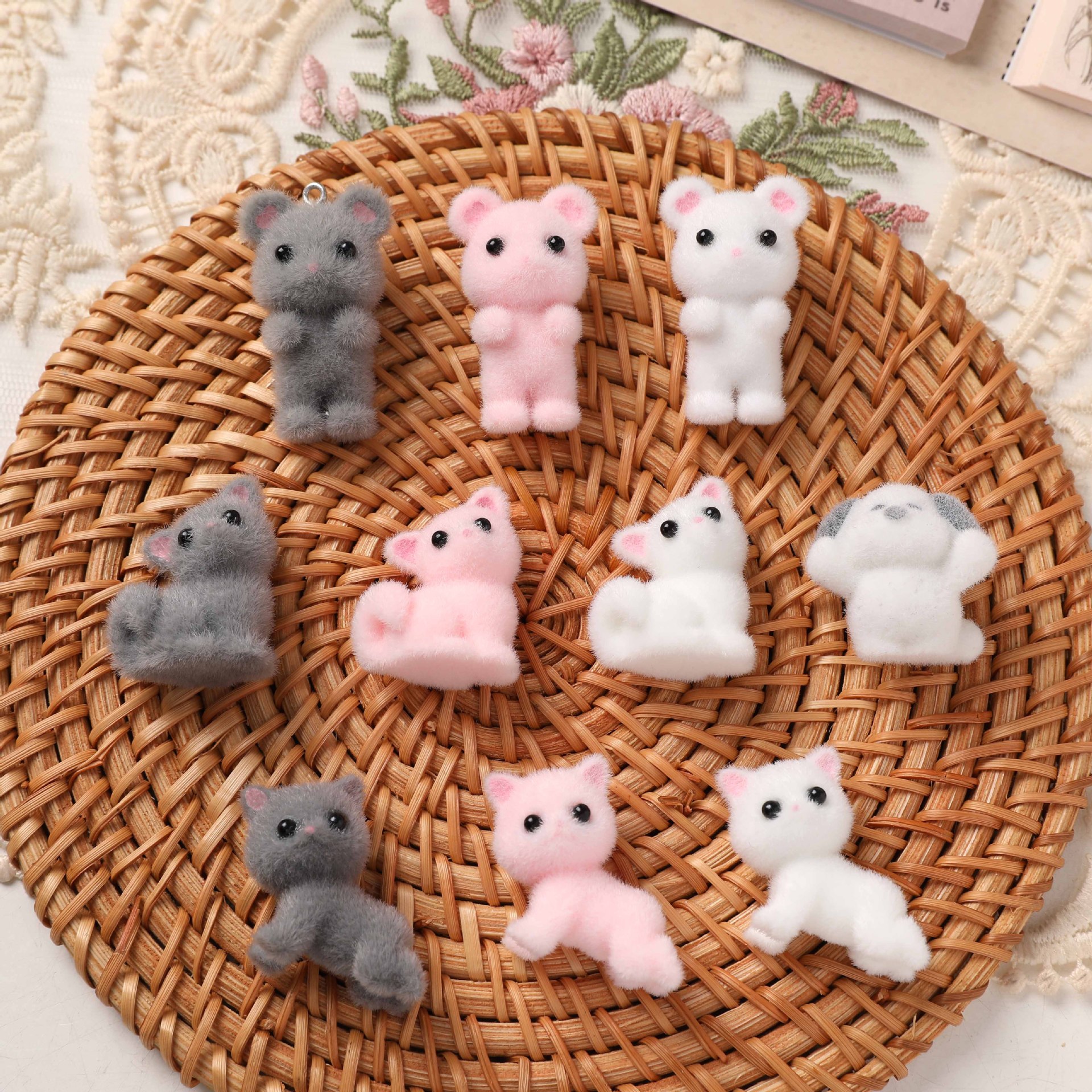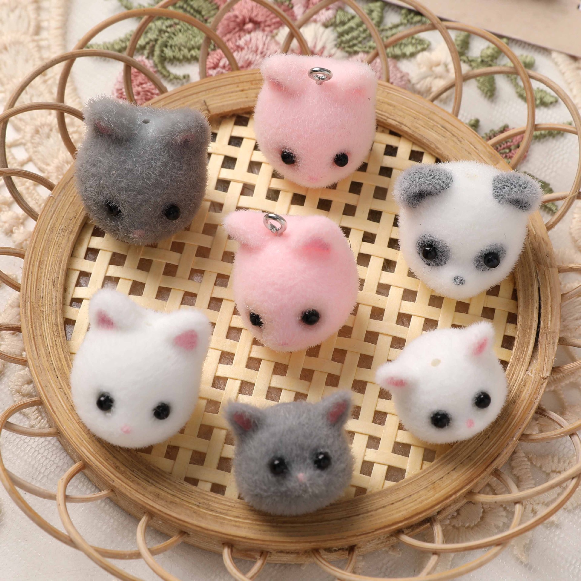 甘美でかわいい立体猫ネズミパンダの頭植毛樹脂DIYキーホルダーアクセサリー材料