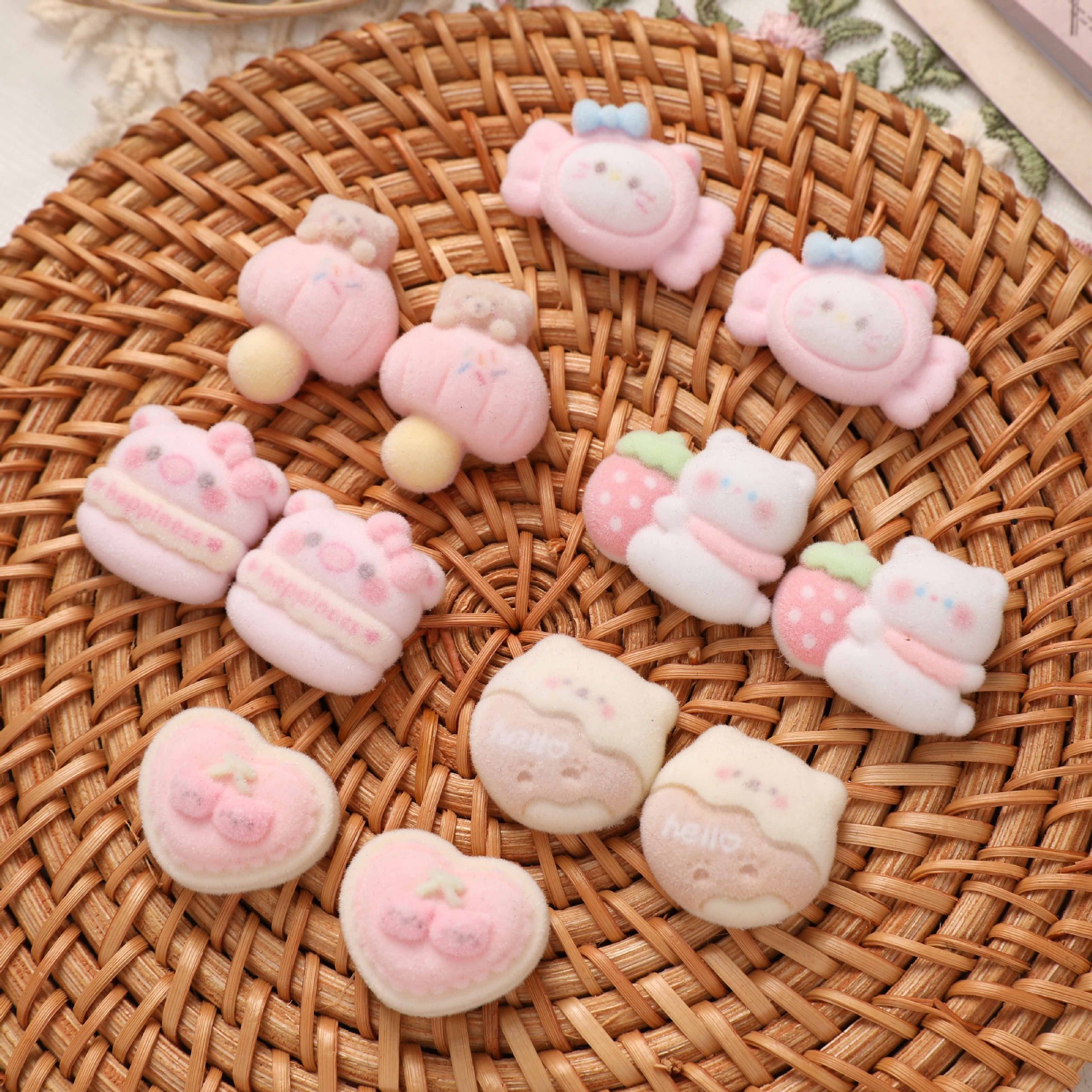 漫画热い贩売植毛猫ちょう结び花クリームアクセサリーdiy少女髪饰りヘアクリップ材料卸売