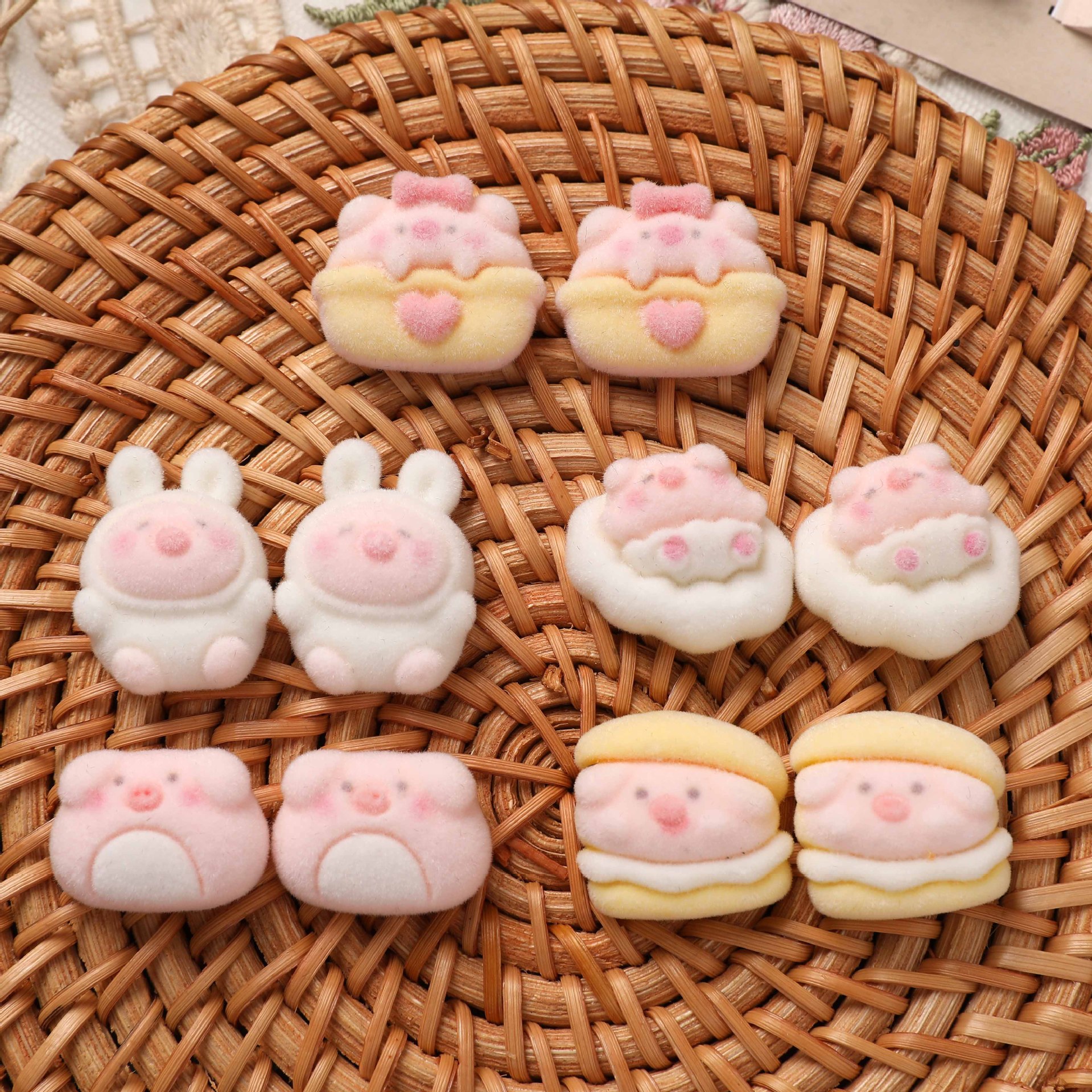 柔らかい萌えの甘いピンクの豚のウサギの植毛樹脂の部品DIYの髪飾りのヘアピンのアクセサリーの材料の卸売り