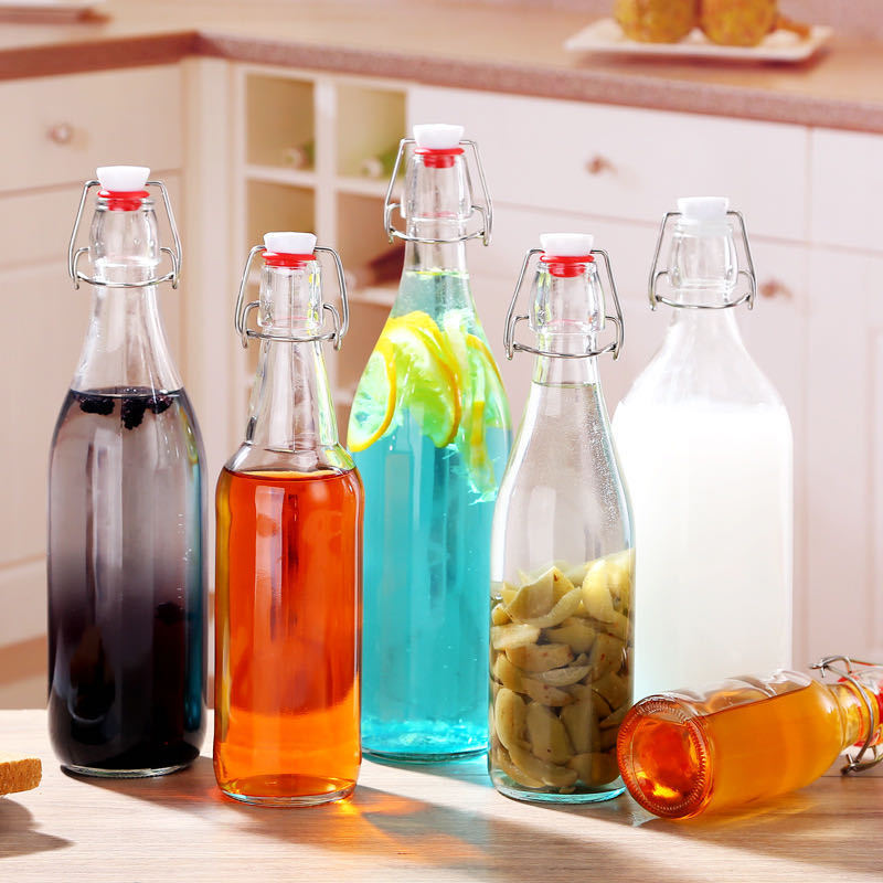VOSS水筒ガラス瓶密封蓋付き酒瓶大口自家製酒容器薬酒瓶飲料瓶缶