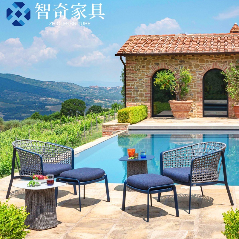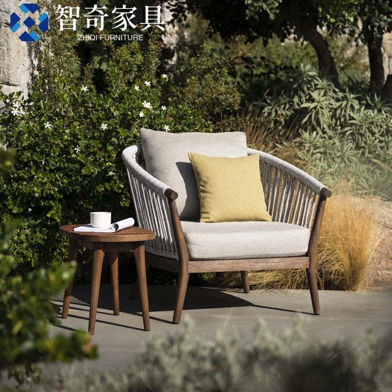 屋外チーク籐椅子ソファ中庭B&Bガーデンバルコニーレジャー籐防水編組ロープ組み合わせ屋外家具