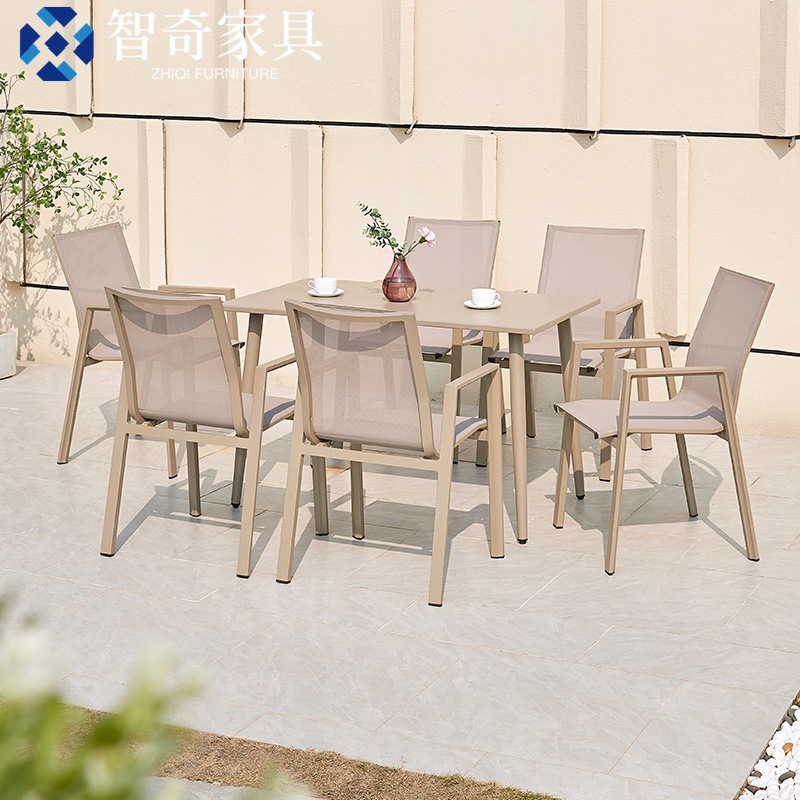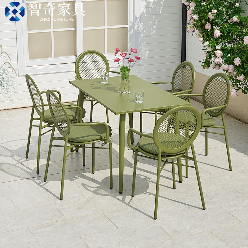 ネット赤屋外テーブルと椅子の組み合わせ現代シンプルな全アルミミルクティー店カフェの外に商用庭園のレジャーテーブルと椅子を置く