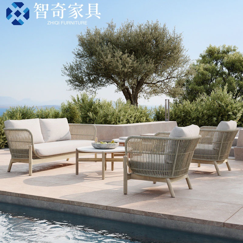 屋外テーブルと椅子、中庭屋外ロープ編みレジャーテーブルと椅子、B&Bホテルのロックプレートダイニングテーブルと椅子、アルミニウム合金ソファの組み合わせ