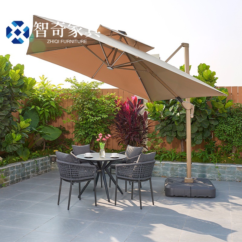 屋外テーブルと椅子、テキスタイルメッシュチェア、パラソル付き中庭ガーデンレジャー、カフェバー、ミルクティーショップ屋外スペース