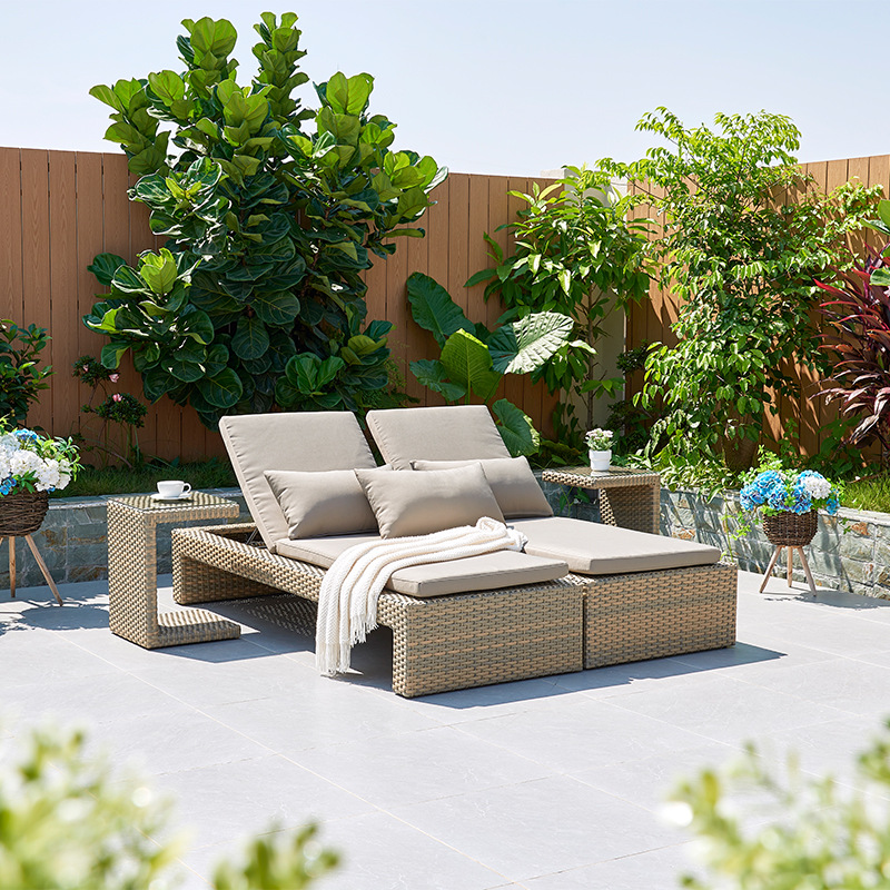 屋外藤編二人ベッド折り畳みソファ別荘ホテル客間水泳館海辺庭園レジャービーチ椅子