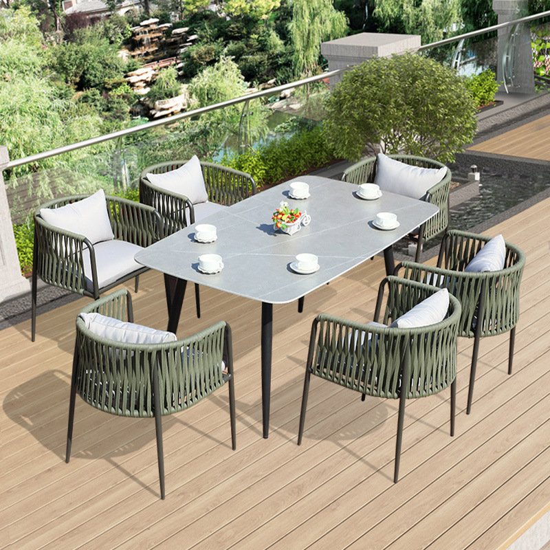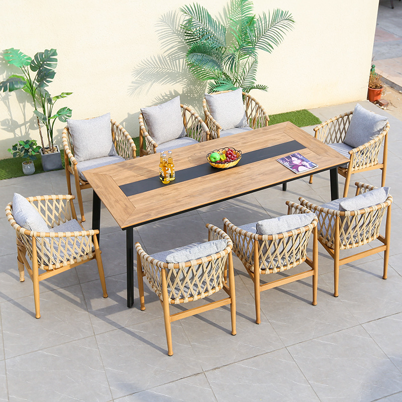 屋外縄編みテーブルと椅子庭別荘レジャーシートハイエンド屋外露店藤編み防水日焼け止めテーブルと椅子の組み合わせ