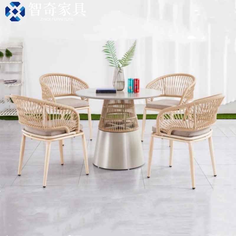 露天バルコニー庭園屋外家具屋外カフェミルクティー店防水日焼け止め藤編みテーブルと椅子の組み合わせ