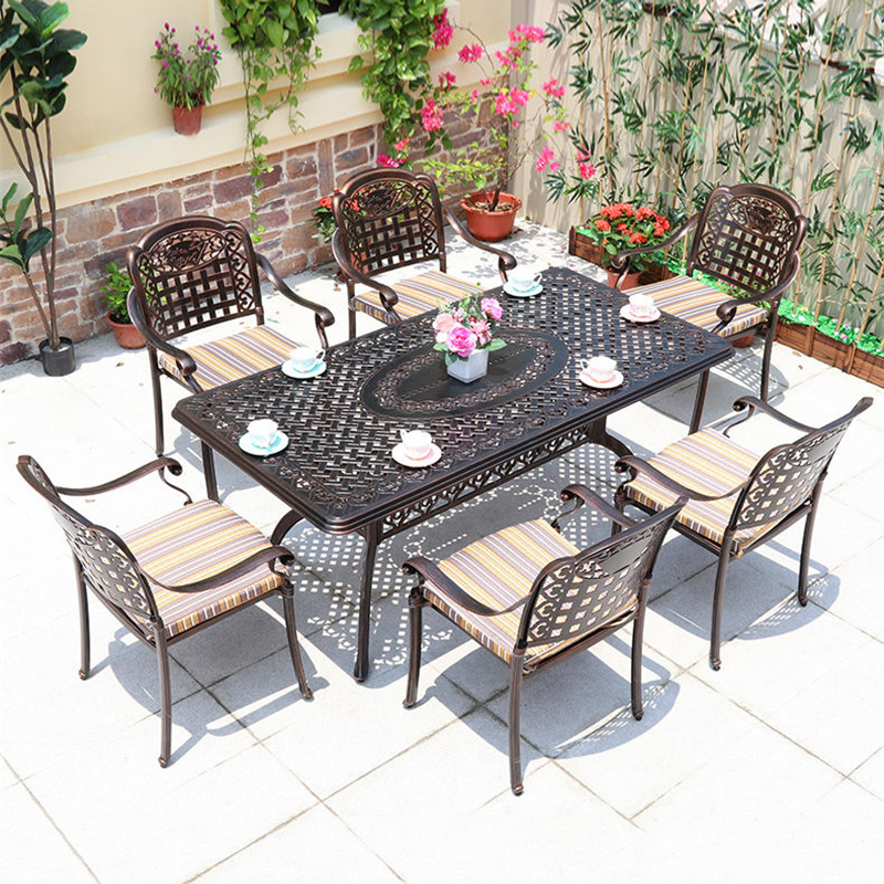 鋳造アルミ屋外テーブルと椅子アルミ合金椅子円卓長テーブルと椅子別荘庭露店花園屋外家具