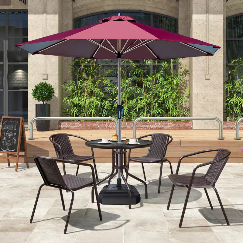 屋外テーブルと椅子の傘付きパラソルの組み合わせ屋外露天コーヒーミルクティーショップのレジャー外振子鉄芸庭藤椅子