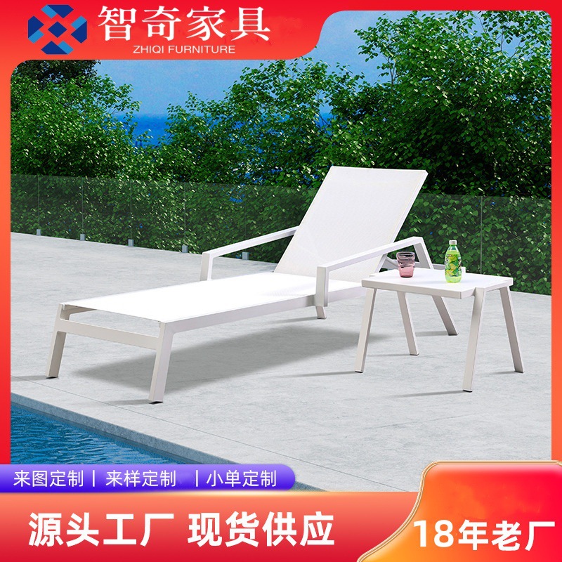 屋外ホテル庭アルミパイプ寝椅子プールレジャー家具ビーチ椅子テスリンメッシュ手すりベッドセット