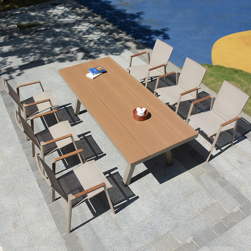 屋外プラスチック木製テーブルと椅子屋外レジャーテーブルと椅子