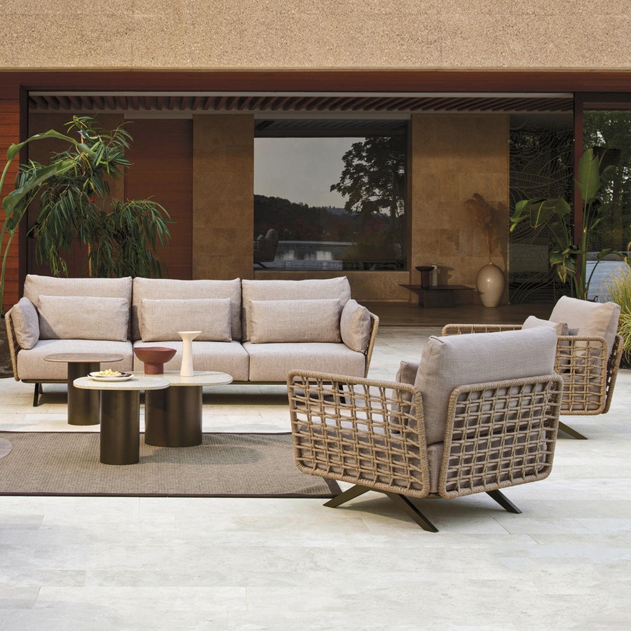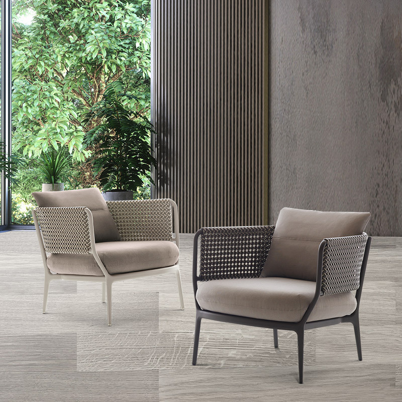 庭の屋外のソファーの藤の椅子の1人のロープの露店の屋外のベランダの椅子の別荘の民宿の家具のお茶の組み合わせ