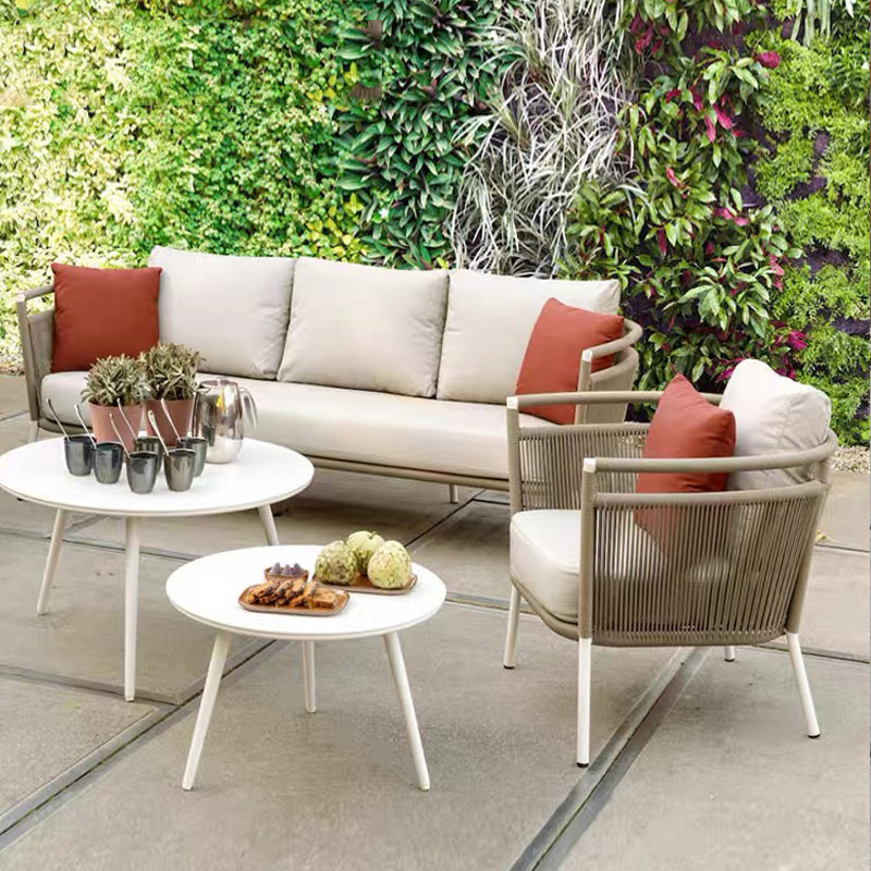 アルミ合金屋外籐編みソファティーセット欧米人デザイナー庭ソファ防水日焼け止め籐椅子ソファ