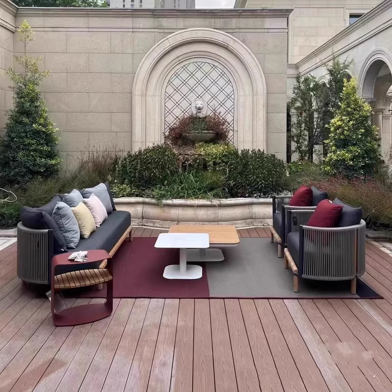 戸外ソファー庭園家具露天レジャー椅子グレープフルーツ屋外ホテル花園露店ソファーセット実木