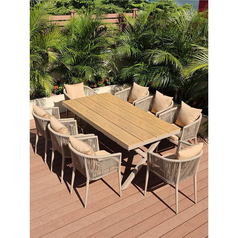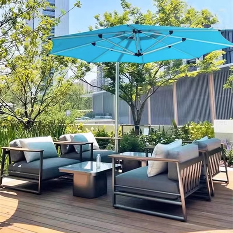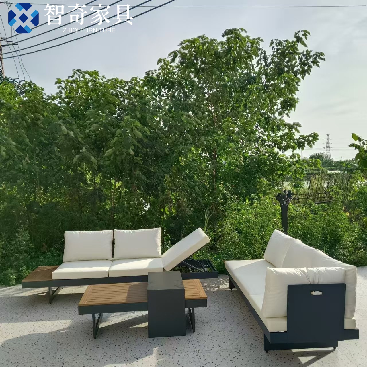 屋外ソファーチークアルミ合金コーナー茶台庭園レジャー別荘ホテル防腐木組み合わせ露天家具