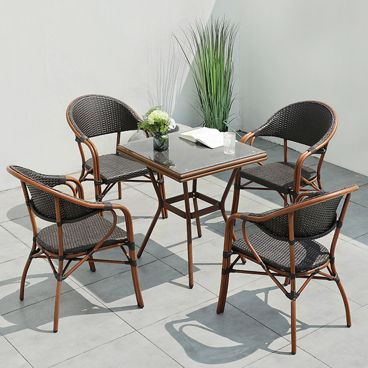 ベランダのレジャーテーブルと椅子の屋外庭園の籐の椅子のレストランのホテルの小さいテーブルと椅子の組み合わせは簡単です。