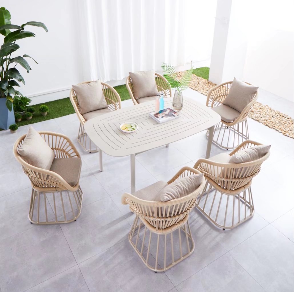 屋外ベランダ庭園レジャー藤椅子屋外海辺ホテル民宿創意防水日焼け止めテーブルと椅子の組み合わせ家具