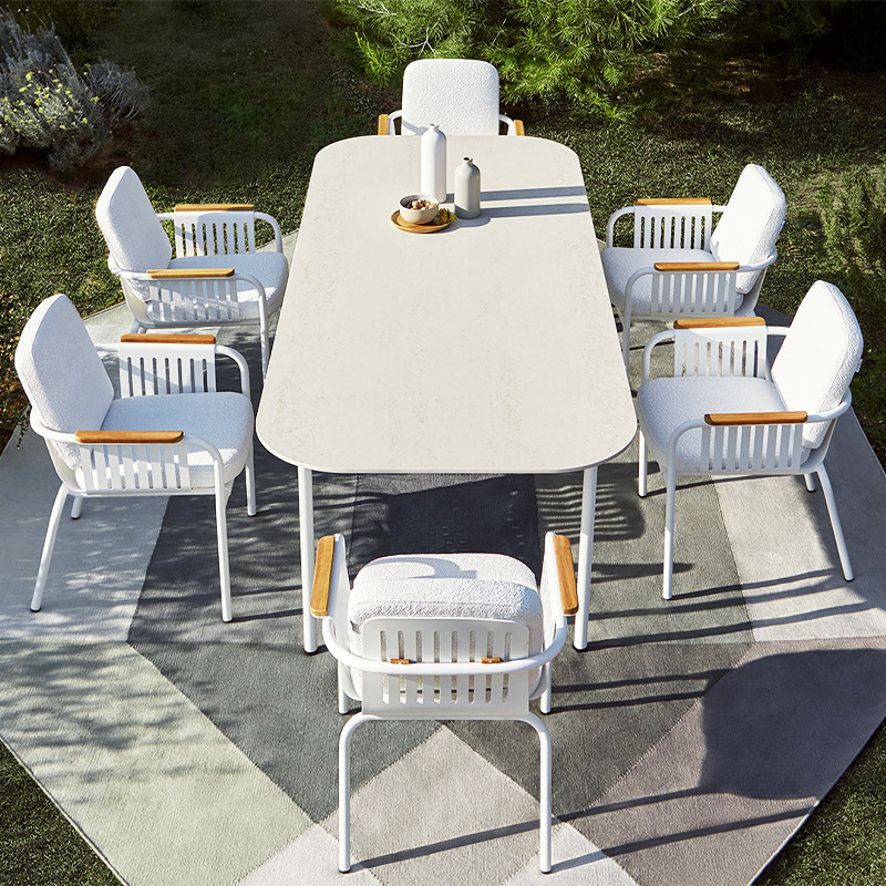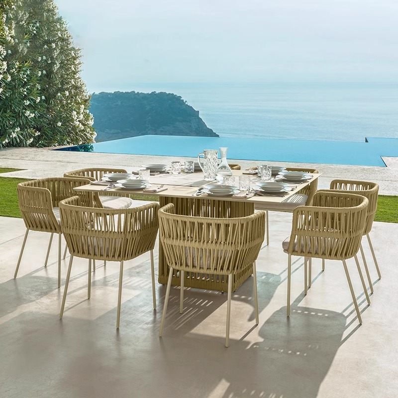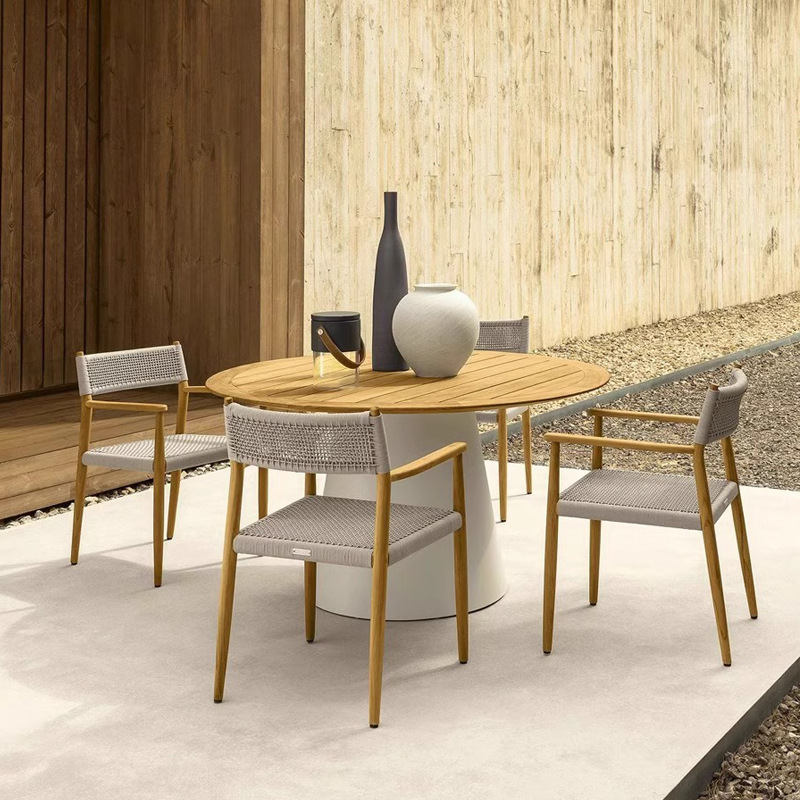レジャー屋外テーブルと椅子のチーク屋外ホテル庭のお茶の組み合わせの別荘の露店の北欧のレストランの藤は家具を編みます。