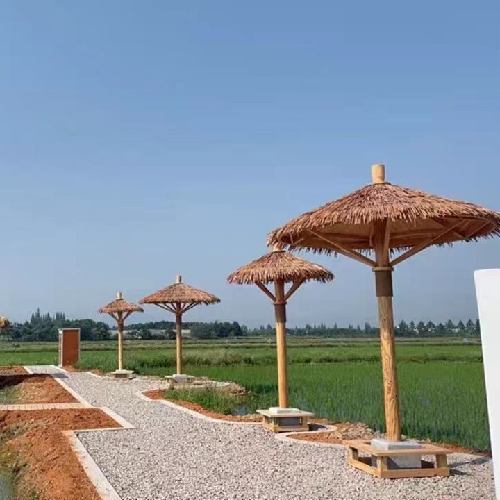 茅草傘屋外凉亭円亭庭茅草亭防腐木日除け小屋茅草棚模造古景観亭