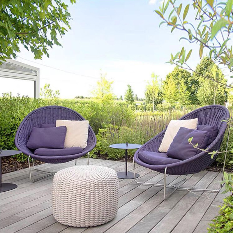 北欧屋外レジャー椅子一人ロープ編みソファリクライニングリゾート民宿藤芸家具藤編み防水日焼け止め