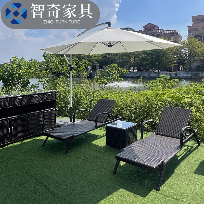 屋外リクライニングチェア庭バルコニー籐編みレジャーベッドビーチチェアプールスパスパ籐リクライニングチェア
