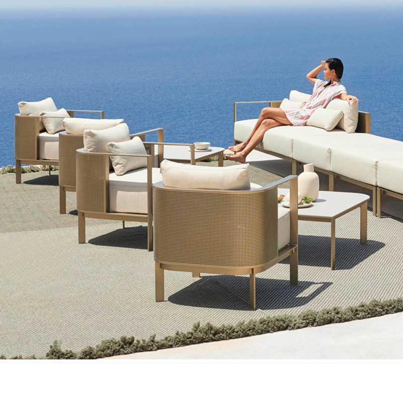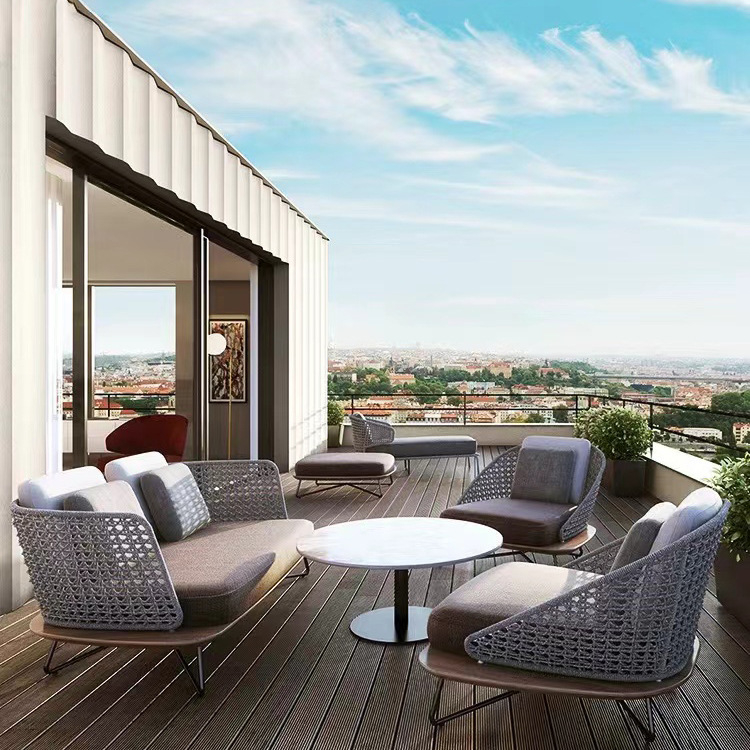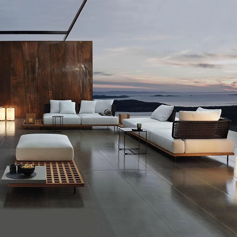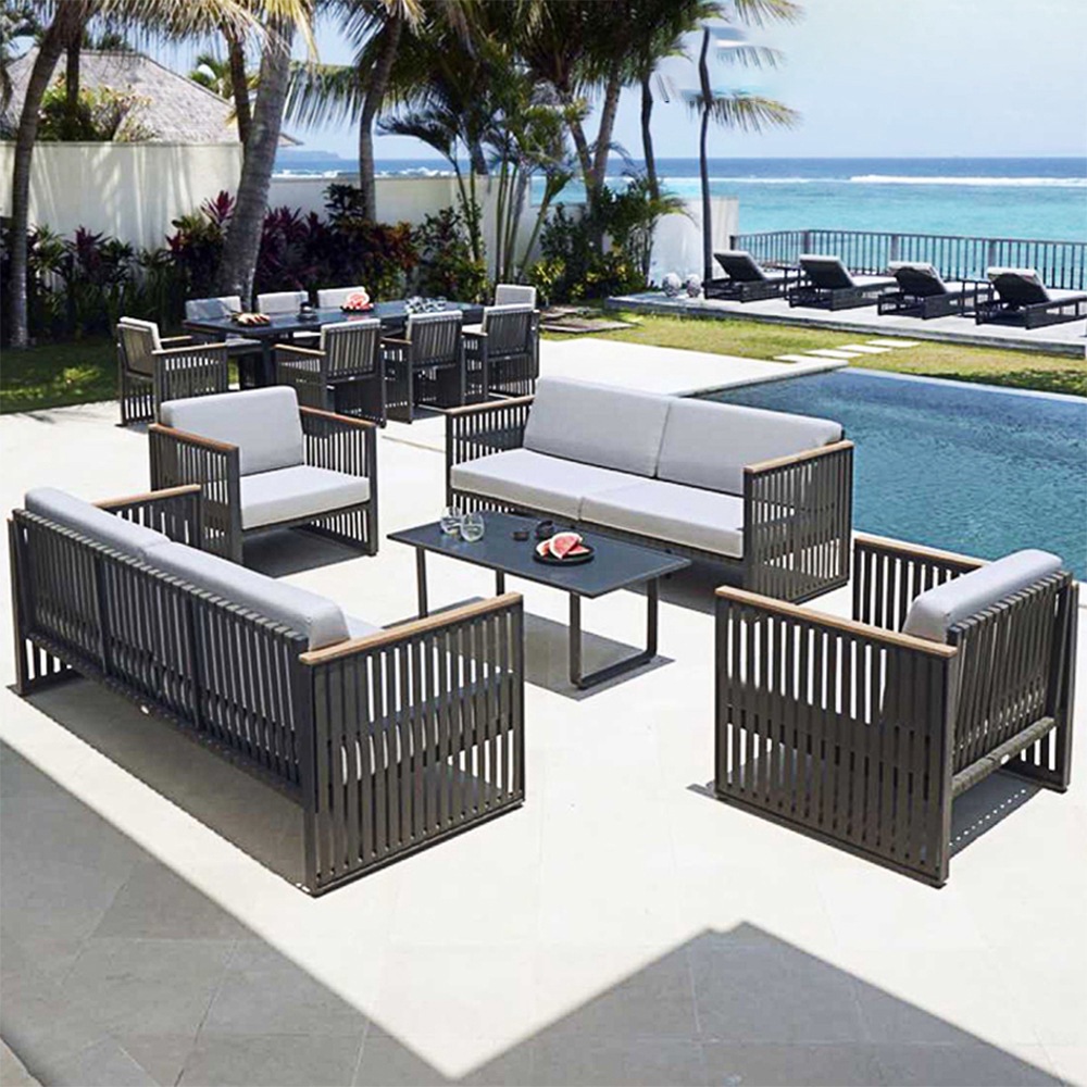北欧屋外籐編みソファーコンビネゾン屋外チーク材庭園民宿ホテルテラス防水日焼け止め家具