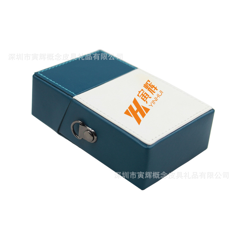 メーカー卸売ブルー PU レザーフリップタバコボックス包装箱ギフトボックスギフトボックスタバコ収納ボックス印刷可能なロゴ